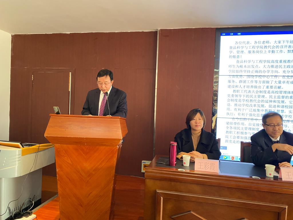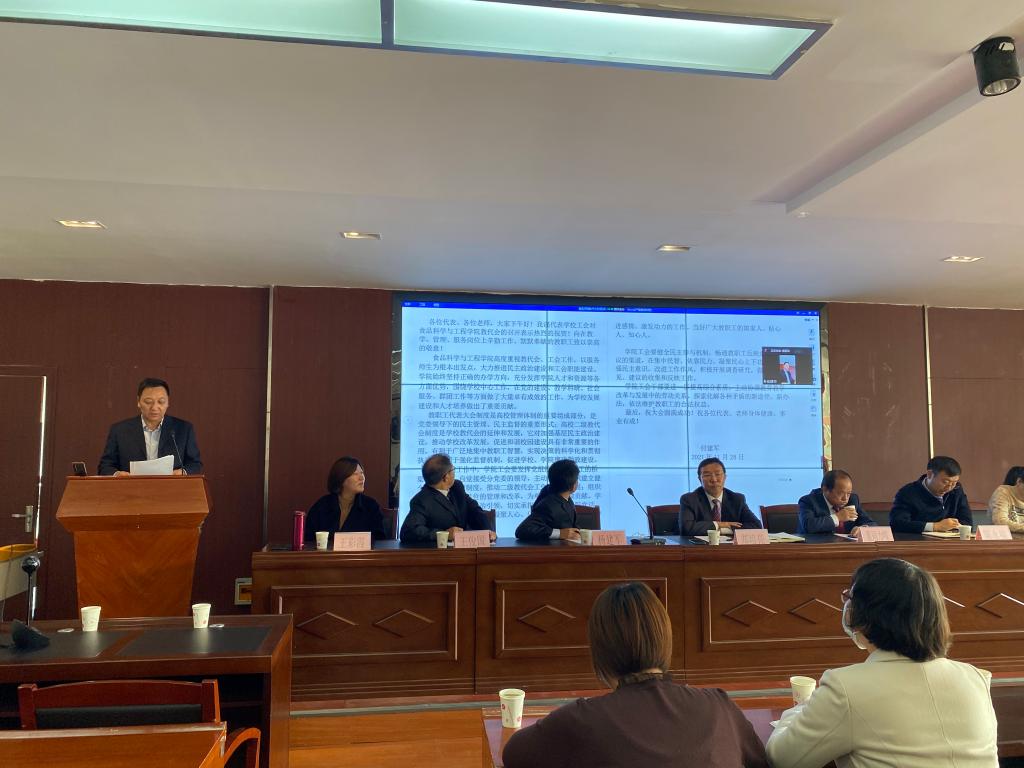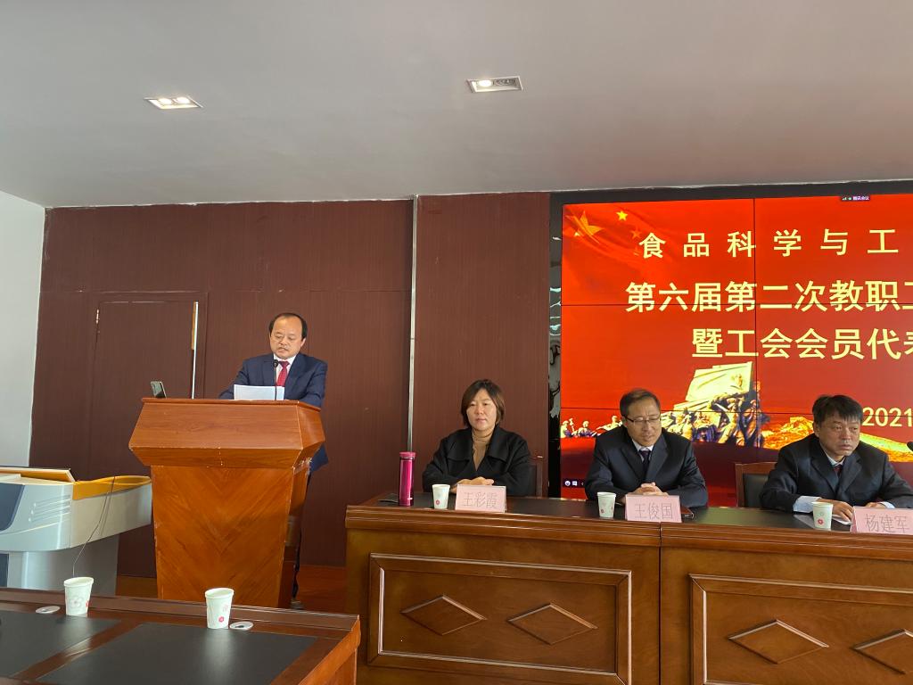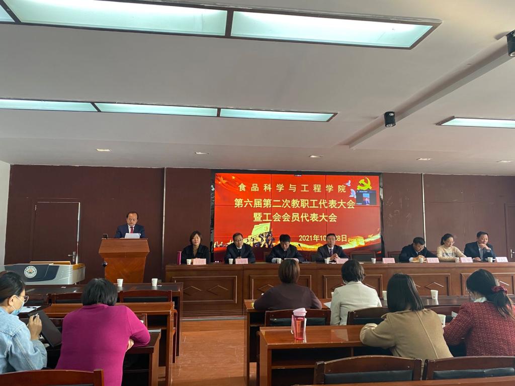 10月28日下午2:30,我院第六届第二次教职工代表大会暨工会委员代表大会在乳品楼二楼会议室召开,学院领导班子成员、党委委员、工会委员及各科室负责人到场参加。我院其他教职工通过视频会议线上参加,大会由我院党委副书记杨建军主持。