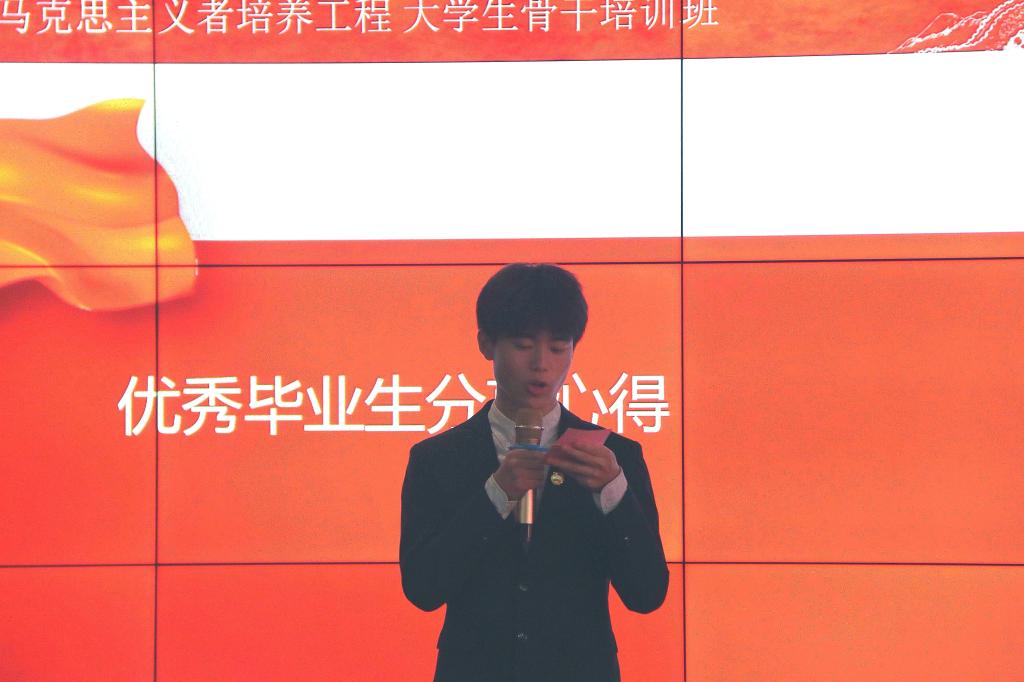 王彩霞老师在结班仪式上提出全体学员应该进一步明确作为学生骨干的责任与担当,在未来的学习和工作中一定要积极发挥排头兵、领头羊的作用,坚持远大理想,坚持刻苦学习,坚持艰苦奋斗,充分发挥模范作用甘于奉献;不负重托、不辱使命,做马克思主义理论的青年实践者,做社会主义建设的栋梁之才。