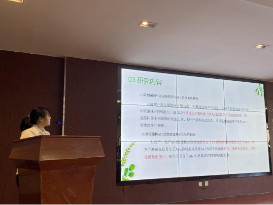 本次研讨会共收到投稿44份,经过初筛后,共有16位同学进行口头汇报,其中硕士生8位、博士生8位,汇报内容覆盖乳品、肉品、食品包装、发酵等多个学术领域。汇报内容学术成就较高,多篇文章已经在重要期刊上发表。其中马腾同学的《益生菌通过调节肠道微生物组和血清代谢组减轻哮喘症状》发表在《Microbiology Spectrum》(二区,IF7.171)、杨成聪同学的《Bifidobacterium lactis Probio-M8发酵乳的摄入可以预防酒精性肝病》发表在《Journal of Dairy Science》(一区,IF4.034)、孙雅如同学的《益生菌发酵乳中干酪乳酪杆菌Zhang和乳双歧杆菌V9生长和代谢互作效应及其潜在机制研究》发表在《Journal of Dairy Science》(一区,IF4.034)。