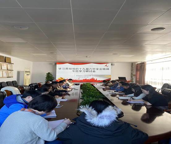 会上大家一致认为党的十九届六中全会是在重要历史关头召开的一次具有重大历史意义的会议,全会审议通过的《中共中央关于党的百年奋斗重大成就和历史经验的决议》通篇融汇了百年来中国共产党践行为中国人民谋幸福、为中华民族谋复兴的初心使命所进行的奋斗、牺牲和创造,深刻揭示了“过去我们为什么能够成功、未来我们怎样才能继续成功”。