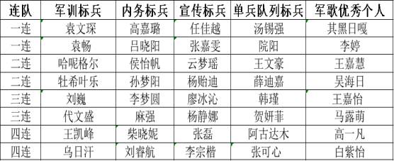 优秀教官:朱宝音德力格尔、浩斯满都拉、武真威、韩蕾