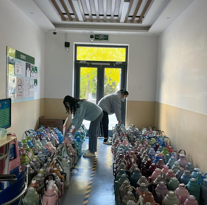 每日6点左右,志愿者们就要起床,依据分配的楼层,结合做核酸的时间,为同学们提供叫醒服务,组织大家有序排队做核酸;每日12点和18点分别接收午餐和晚餐,每层楼2位志愿者会分别将午餐和晚餐发放到各宿舍,确保每位同学都能及时用餐;下午4点左右,配合公寓外的老师们组织收壶打热水,确保同学们的热水饮用;晚饭后,志愿者开始收生活垃圾,打包搬运,及时处理。一天中的最后一项工作就是发放第二日的早餐,等待早餐配送到公寓楼后,志愿者们将早餐按人数投放到每个宿舍外的早餐箱中。