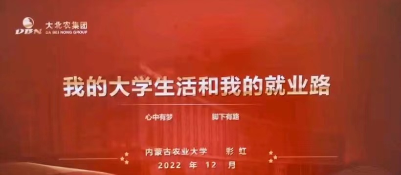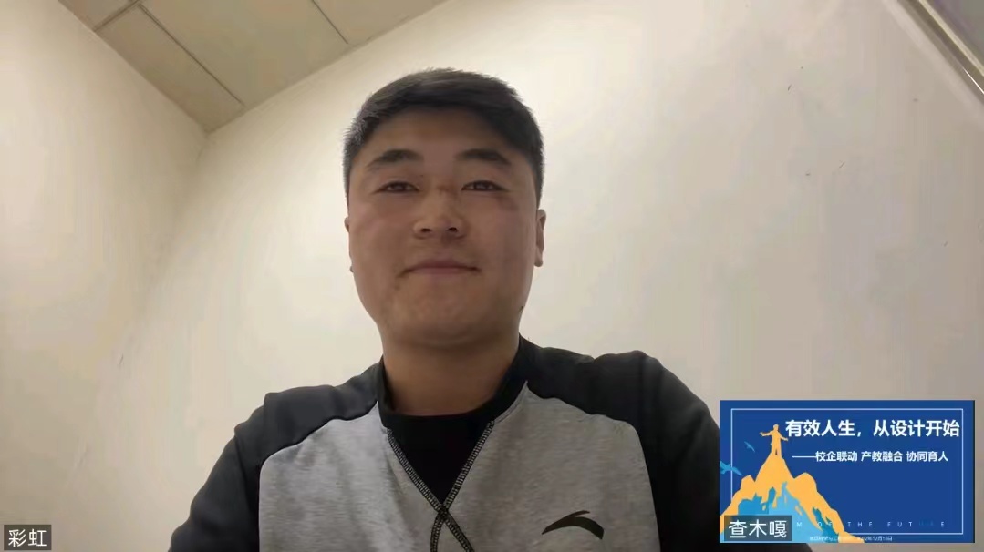 校友彩虹以“我的大学生活和我的就业路”为题与同学们分享了自己个人经历以及对择业和就业的思考。他讲到,大学期间从兼职到创业、休学再复学,由一名乡村社会实践学员成为助教再到董事长助理,最后在毕业生结缘大北农集团,整个经历是认识自己是农民,爱农、强农、富农最后到报国兴农的心路历程和实践转化。最后他勉励屏幕前的同学要突破自己的舒适圈,学以致用,虽然前路漫漫,但要坚持初心,持续全力以赴。