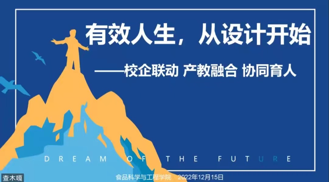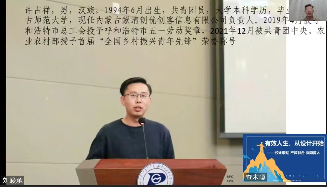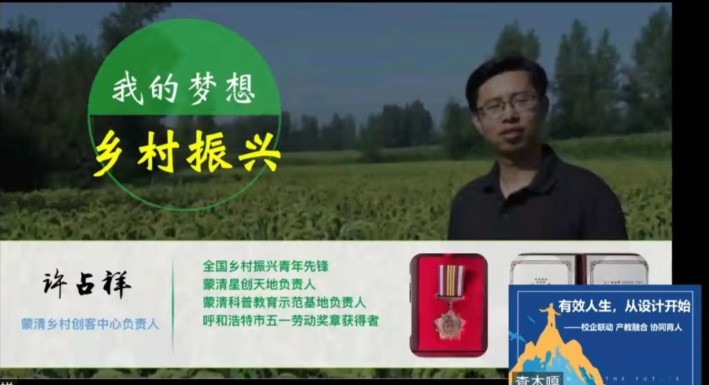 为学习贯彻落实党的二十大精神,落实立德树人根本任务,积极探索协同育人新路径,全面深化校企合作和产教融合,助力学生成长成才,12月15日19:30,我院举办“有效人生,从设计开始—校企联动、产教融合、协同育人”线上分享会。教育部备案的“创业创新导师”,中国农业大学MBA企业导师,呼和浩特市第十五届人大代表刘峻承,大北农集团饲料科技产业内蒙区区域经理、蒙清第四届社会实践学员,校友彩虹,蒙清国家星创天地负责人、首届全国乡村振兴青年先锋、“互联网+”创新创业大赛国家级铜奖获得者许占祥,米智厨科技董事长、多个餐饮品牌创始人、内蒙古餐饮行业十大杰出人物刘昕应邀出席做分享嘉宾。分享会由我院副院长陈永福主持,学院约1200名同学及家长通过钉钉在线收看。