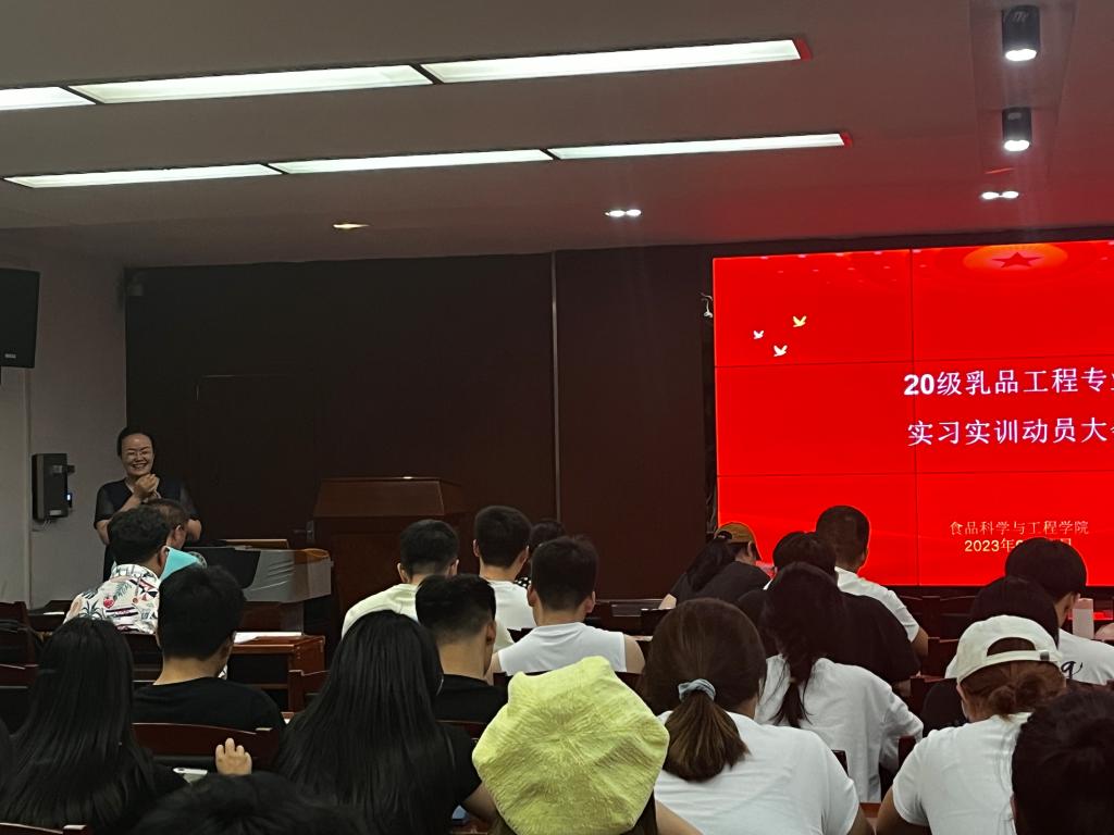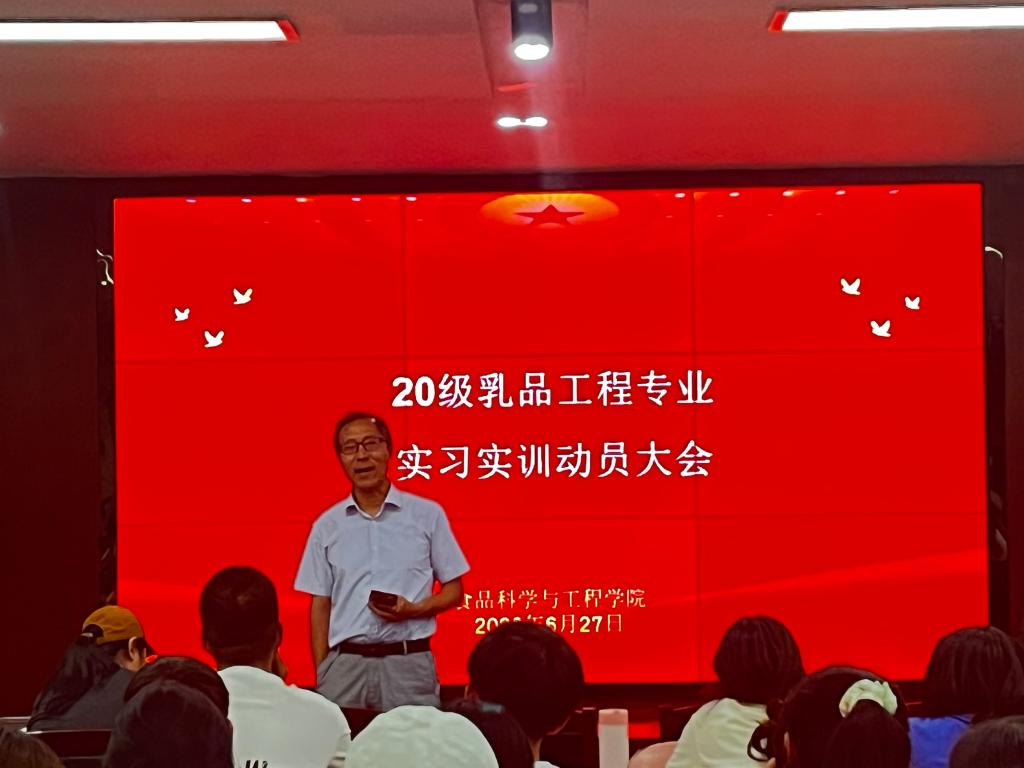 为使2020级乳品工程专业同学们了解实习实训的意义及目的,在实践中掌握专业知识,练就专业本领,6月27日晚7:00,我院于乳品楼二楼会议室召开2020级乳品工程专业实习实训动员大会。学院副院长王俊国教授、学院督导组组长双全教授以及乳品工程教研室老师参与本次动员会。