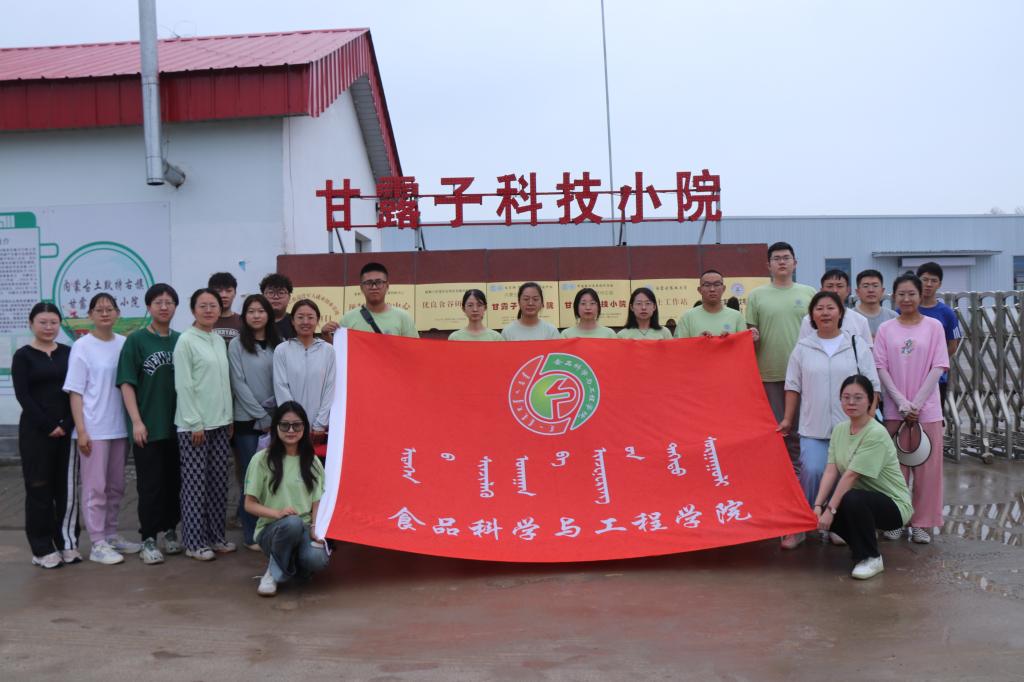7月21日上午,实践队员乘坐实践号文明大巴来到土默特右旗甘露子科技小院,深入学习习近平总书记给中国农业大学科技小院的学生重要回信精神。50亩农田,几间农房,背靠充满希望的田野,依托科技与人才的力量,这里孕育着广袤乡村美好的未来。自甘露子科技小院成立以来,我校孙文秀教授的科研团队扎根西老藏营村,围绕甘露子种质资源库建立、新品种培育、保鲜机制研究、甘露子精深加工、副产物再利用等全产业链重要方面开展了一系列工作。经过参观学习,队员们见证了土默特右旗在现代农业方面取得的巨大成就,感受到了通过科技赋能助力乡村振兴的重要性,在田间地头深刻理解什么是实事求是,什么叫“自找苦吃”,领悟到了习近平总书记对青年人“志存高远、脚踏实地,把课堂学习和乡村实践紧密结合起来”的殷殷嘱托。