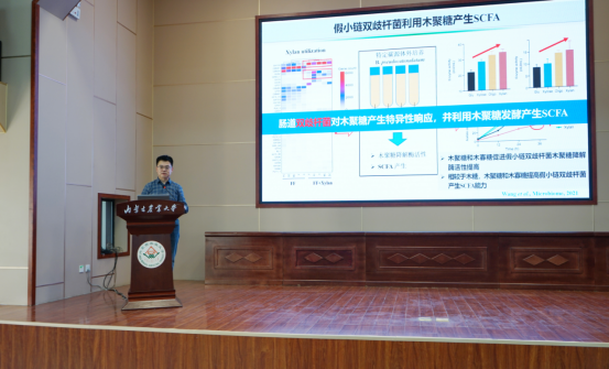 中国农业大学动物科技学院教授、国家杰出青年科学基金获得者、国家生猪产业技术体系岗位科学家王军军以《木聚糖及其降解产物改善猪肠道健康的微生物代谢机制》为题,从动物肠道微生物的角度出发,深入讲述了木聚糖降解产物对猪肠道健康的积极影响,探明了其微生物代谢机制,为农畜产品生产领域提供了新的思路和方法。