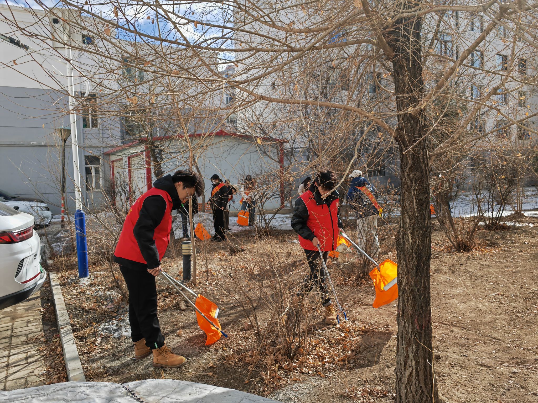 我院志愿者同社区工作人员一起清扫道路及绿化,清整卫生死角,打扫单元楼,以实践行动践行雷锋精神,用辛勤劳动扮靓美丽家园。