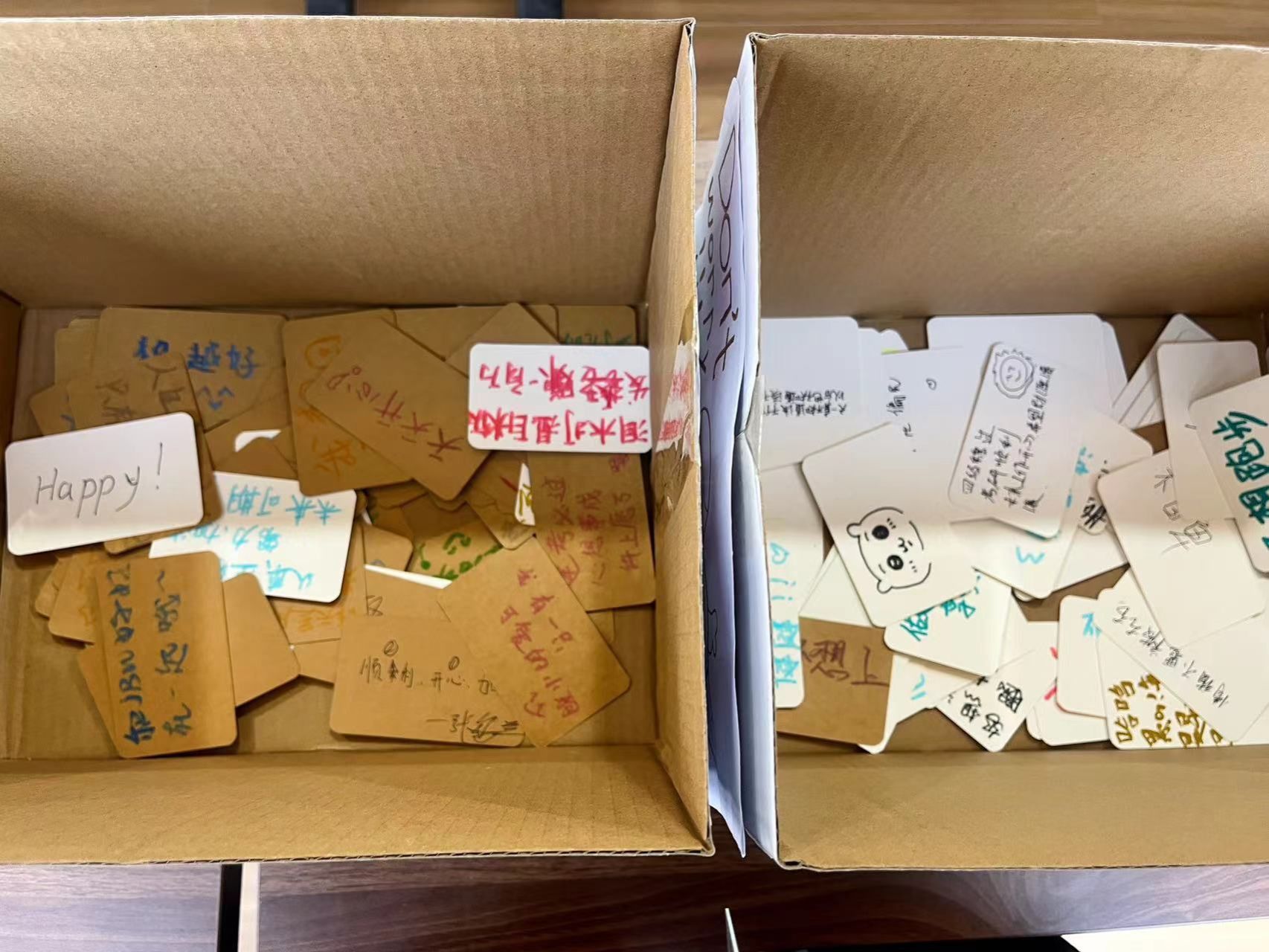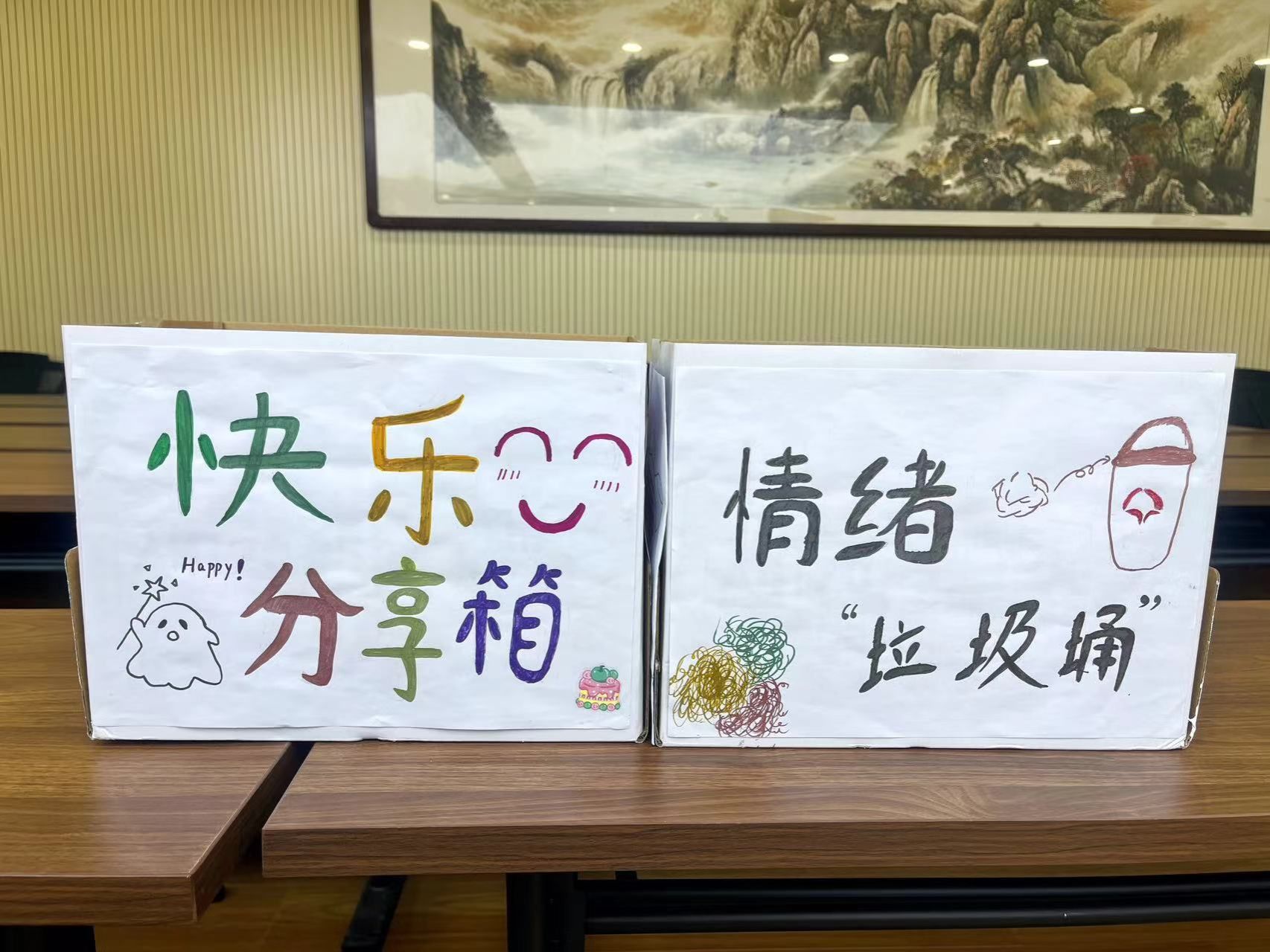 此外学院还举办了形式多样的趣味活动。奇幻“膜”法活动,同学们在保鲜膜上绘出代表生命的图案,描绘对生命的理解,探索生命的颜色,帮助学生认识生命、珍惜生命、尊重生命、热爱生命。刘同学表示:“向日葵,表示我要和它一样乐观积极,向着光前进,拥有蓬勃生命力。 云同学说:“菠萝屋是一个充满欢笑和快乐的地方。在这里,海绵宝宝和他的朋友们一起度过了许多有趣和令人开心的时刻。通过传递积极向上的情感,菠萝屋告诉我们生命的意义在于追求快乐和幸福。它提醒我们重视和珍惜与他人的关系,并追求快乐和幸福,这些都构成了生命的真正意义。”“情绪交换商店”活动中,同学们将快乐趣事投入快乐共享箱中,同时随机抽取箱内卡片一张,分享他人的快乐;也可以将烦恼困惑,投入情绪垃圾桶,倾吐烦恼,拒绝焦虑。