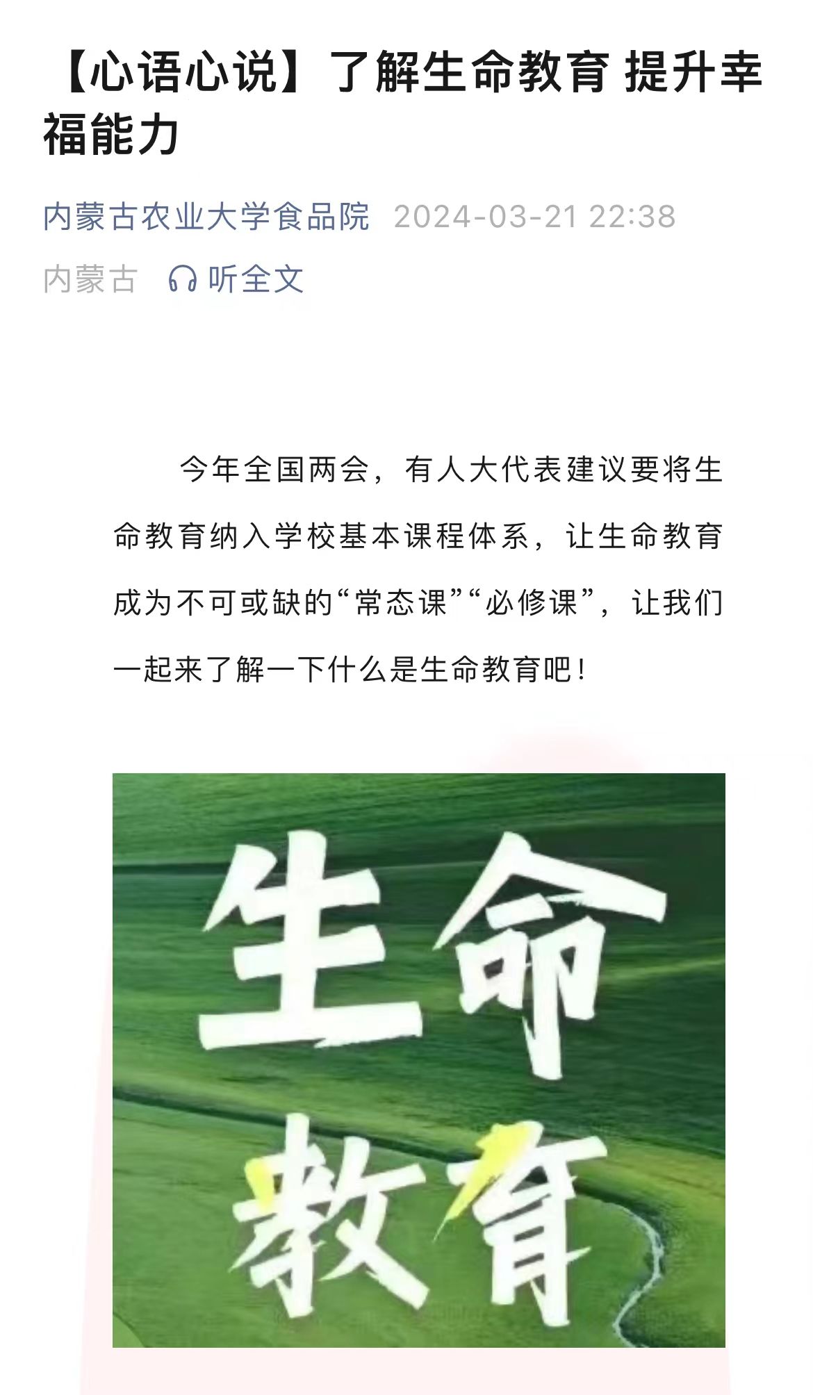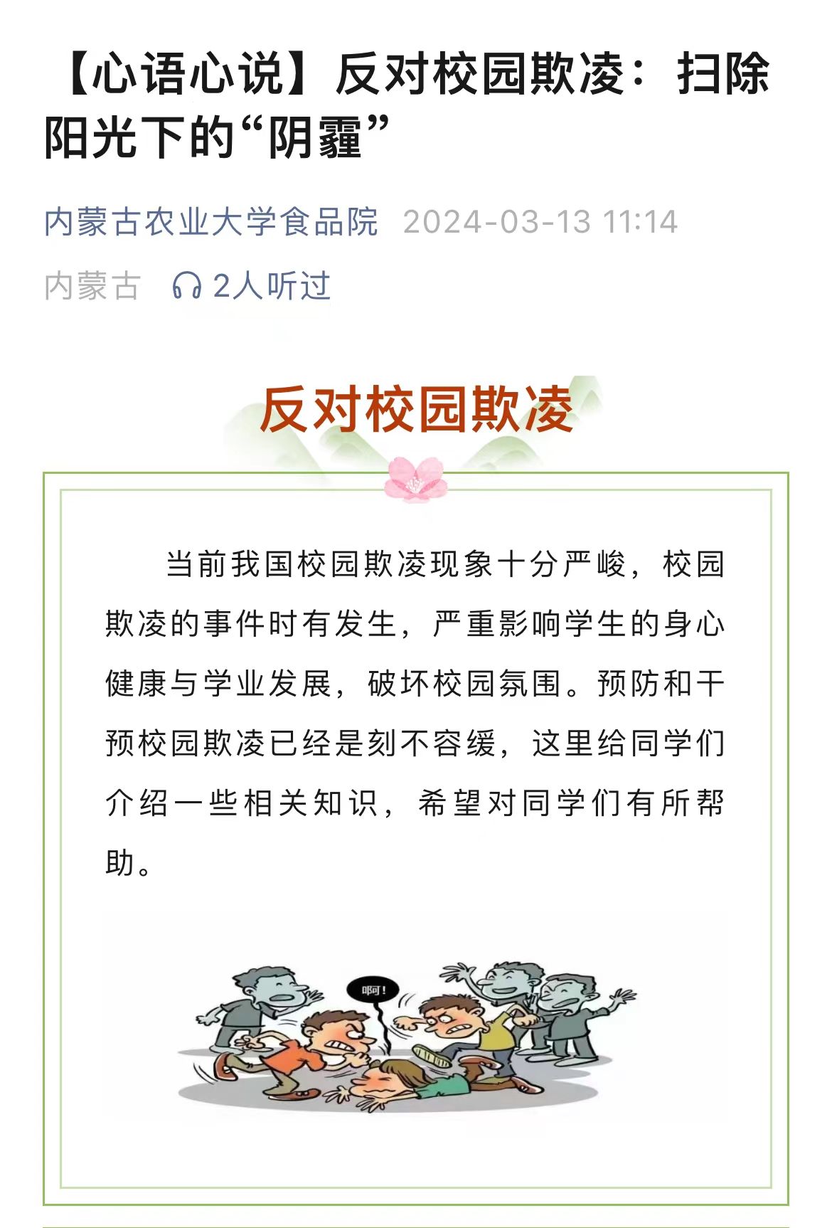 为贯彻落实内蒙古农业大学学生工作处(部)《关于举办 2024年“3.25”心理健康宣传教育系列活动的通知》 , 普及心理健康安全知识,培养学生反对校园暴力、校园欺凌的意识,增强学生对生命的珍惜感 , 伟德体育官网开展主题为“守护青年心理健康,筑牢校园安全防线”的“3.25”心理健康宣传教育系列活动。