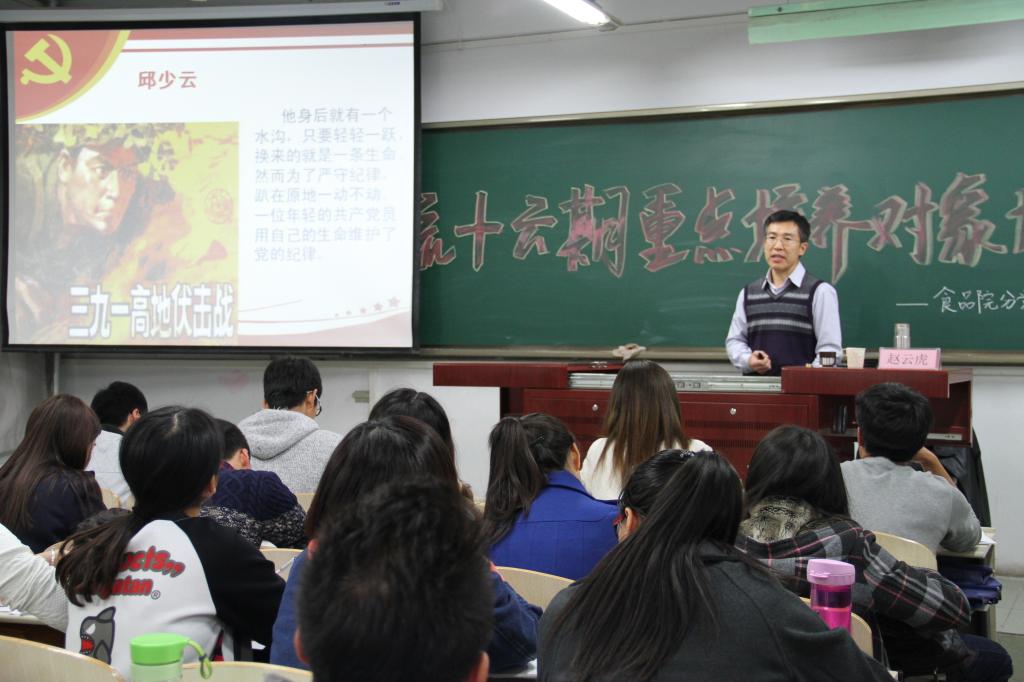 培训会议开始前,杨建军书记向在场的重点培养对象表达了祝贺并向大家讲解如何以端正的态度认识党组织以及如何学习党的理论。随后,赵云虎老师正式开始培训。赵老师重点讲述了党的历史与发展趋向,党是如何领导群众走向小康社会。赵老师讲到道:“很高兴给大家上课,可以看得出大家热爱党的心,希望同学们不管是在今后的学习态度,还是做人做事的态度上,严格用党的要求要求自己,不会辜负党的期望与信任,早日加入共产党。”最后,会议在同学们的热烈掌声中圆满结束。