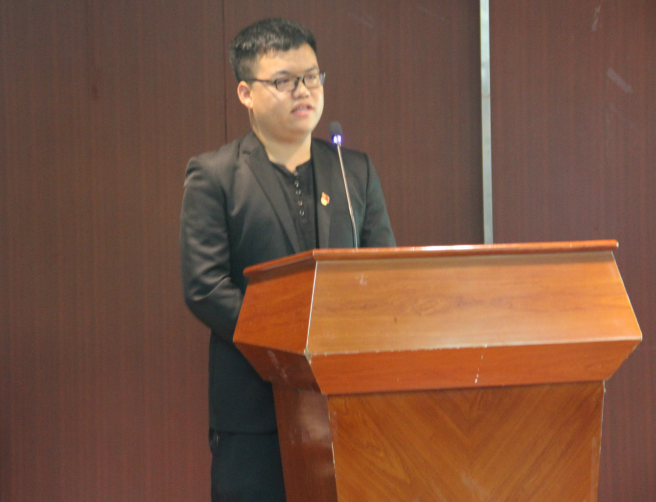全体起立、奏唱国歌声后,郑培亮书记发表讲话。他提到,新时代学生党员要学习为先,全面发展,提高自我综合素质,起到模范带头作用。