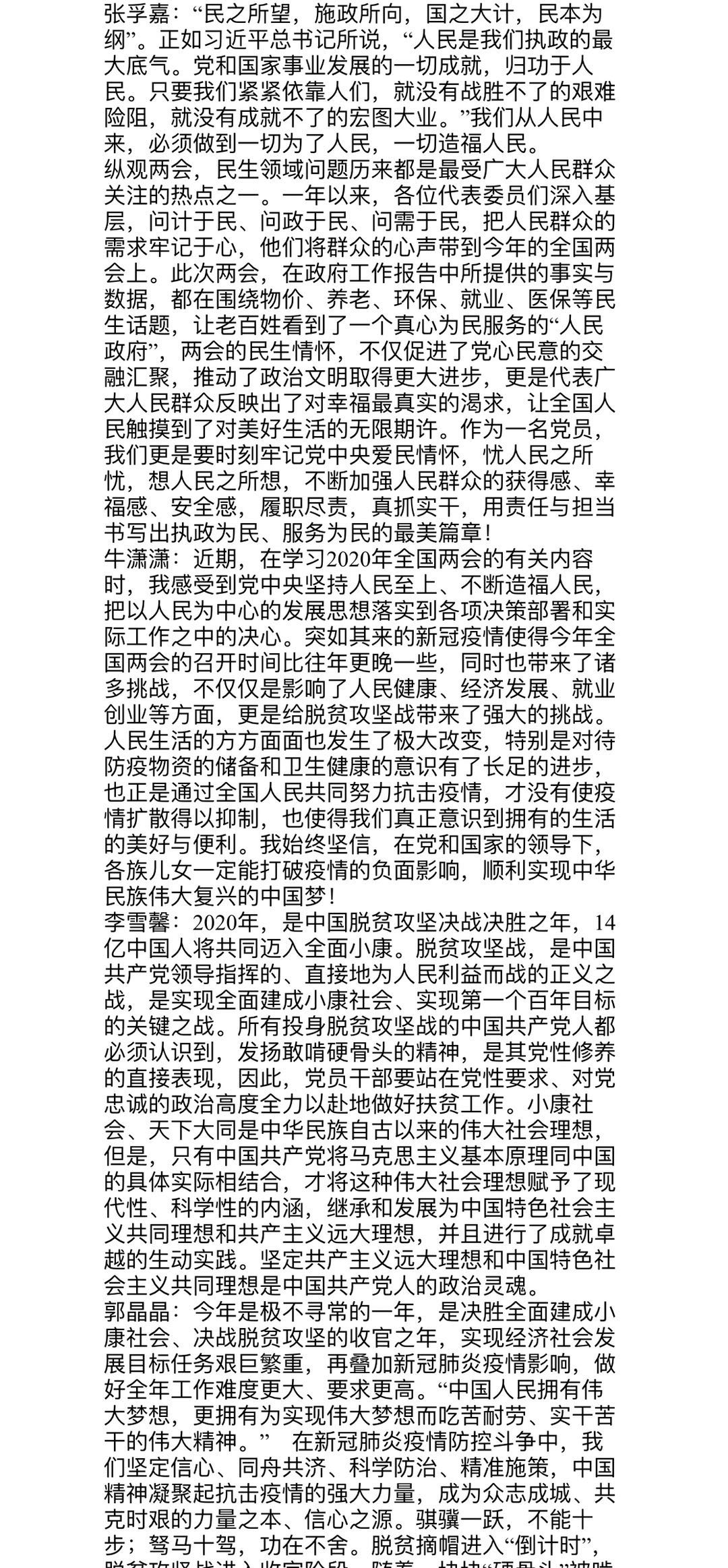 2020年是决胜全面建成小康社会、决战脱贫攻坚之年,也是“十三五”规划收官之年,因受新冠疫情影响延迟的全国两会在5月21、22日胜利召开。连日来,我院各党支部通过多种形式开展了“两会”专题学习活动。