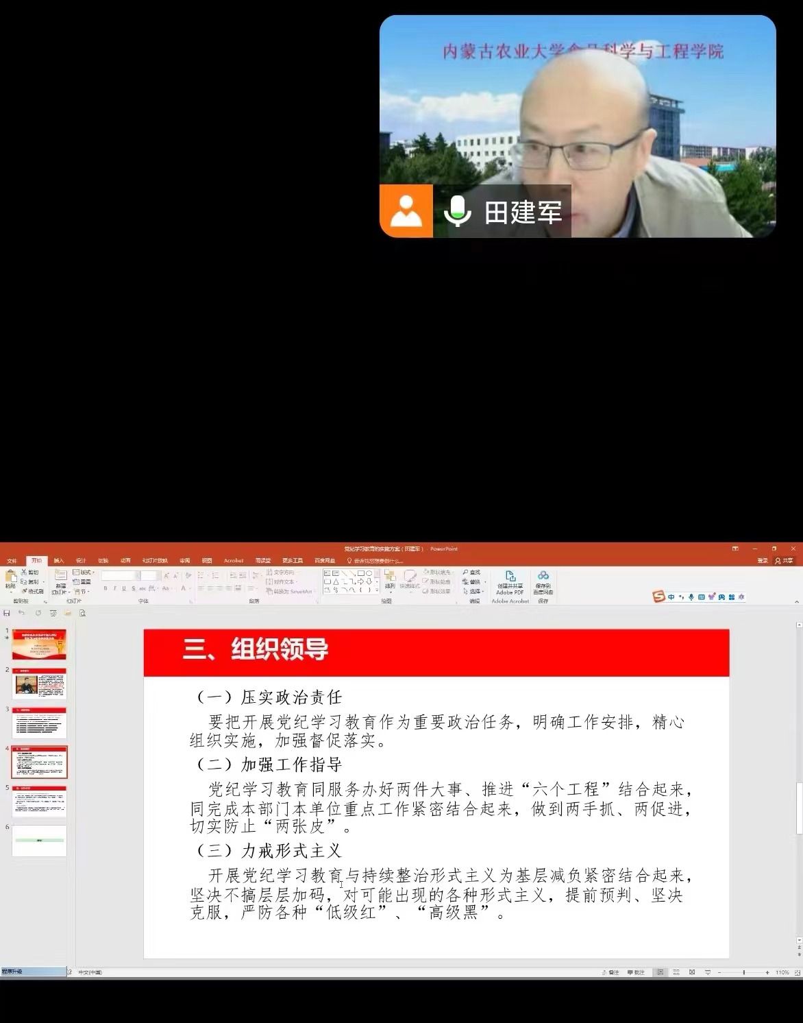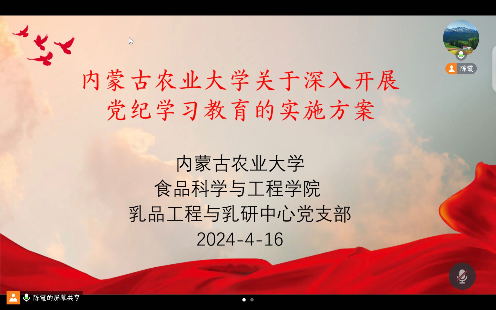 会议传达了校党委关于党纪学习教育部署会的会议精神,领学了《中国共产党纪律处分条例》,解读了《内蒙古农业大学关于深入开展党纪学习教育实施方案》。会议要求,党员领导干部要提高政治站位,压实政治责任,带头学习做出表率,高标准严要求推进党纪学习教育。各党支部要以高度的政治自觉开展好党纪学习教育,引导全体师生党员强化纪律意识、增强政治定力、纪律定力、道德定力、抵腐定力,始终做到忠诚干净担当。