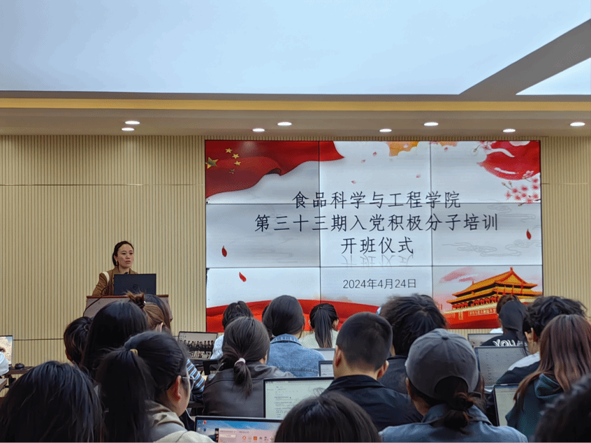 2024年4月24日中午12:30,我院第三十三期入党积极分子培训开班仪式于乳品楼二楼会议室顺利举行。我院党委组织员希吉日主持并讲话,第三十三期入党积极分子培训班全体学员及学生党员服务站成员参加。