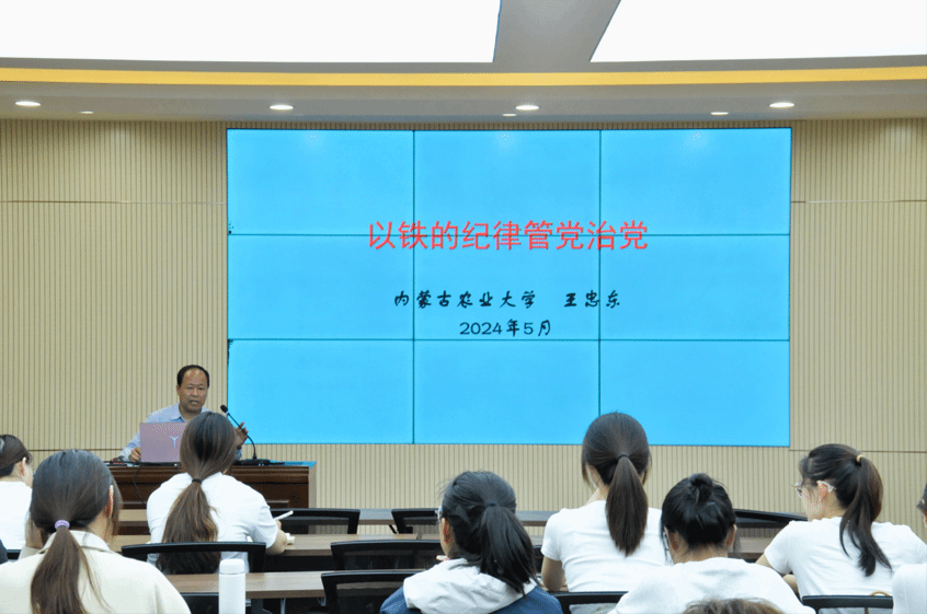 课上,王忠东老师以“以铁的纪律管党治党”为主题,结合《中国共产党纪律处分条例》,围绕“以党的自我革命引领社会革命”和“全面加强党的纪律建设的历程”两个方面深入讲解了党规党纪的发展历史和重要意义。同时,他结合“守纪律、明规矩”的具体内容,希望大家能够通过党纪学习教育,加强党性修养,强化纪律观念,在政治上保持忠诚、组织上服从安排、行动上严守纪律,做遵守党规党纪的学生模范。