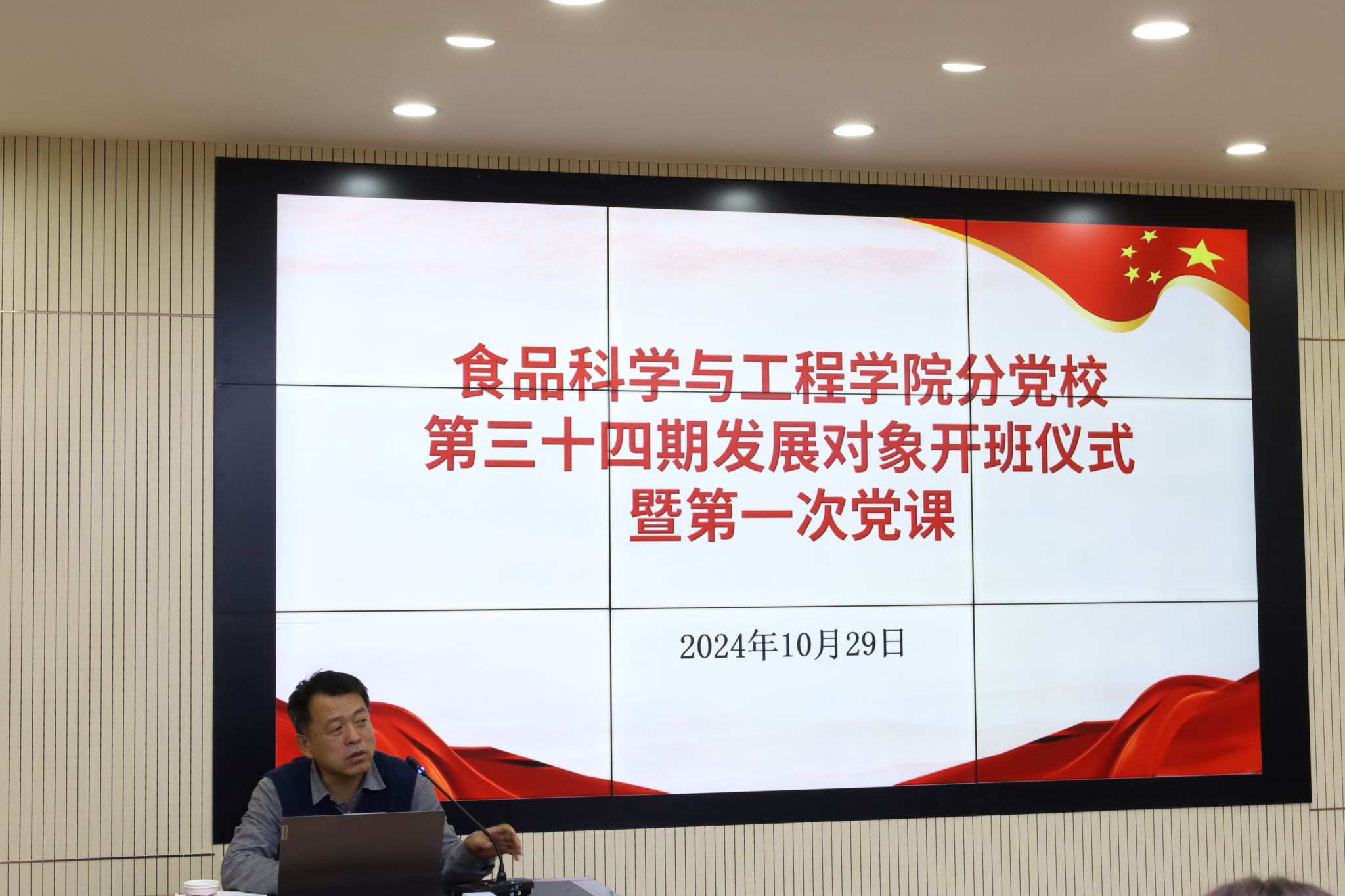 2024年10月29日晚19:00,我院分党校第三十四期发展对象培训班开班仪式暨第一次党课于乳品楼二楼会议室顺利举行。学院党委书记杨建军、学院党委副书记张鹏飞、第三十四期发展对象及学生党员服务站成员参加。