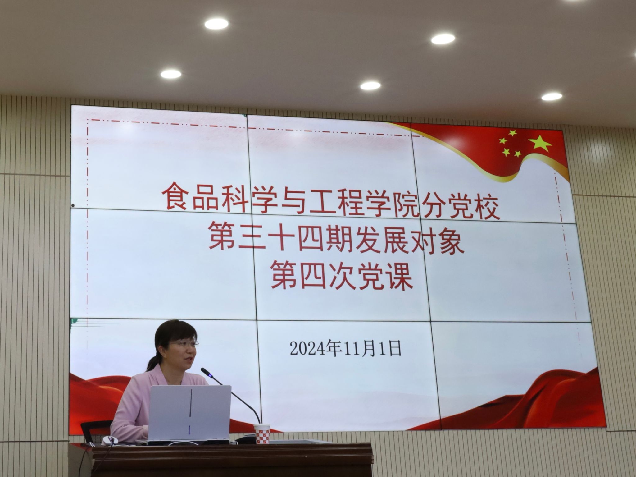 2024年11月1日晚19:00,学院分党校第三十四期发展对象培训班第四次党课于乳品楼二楼会议室顺利举行。本次会议由沙漠治理学院党委书记彭静主讲,第三十四期发展对象及学生党员服务站成员参加。