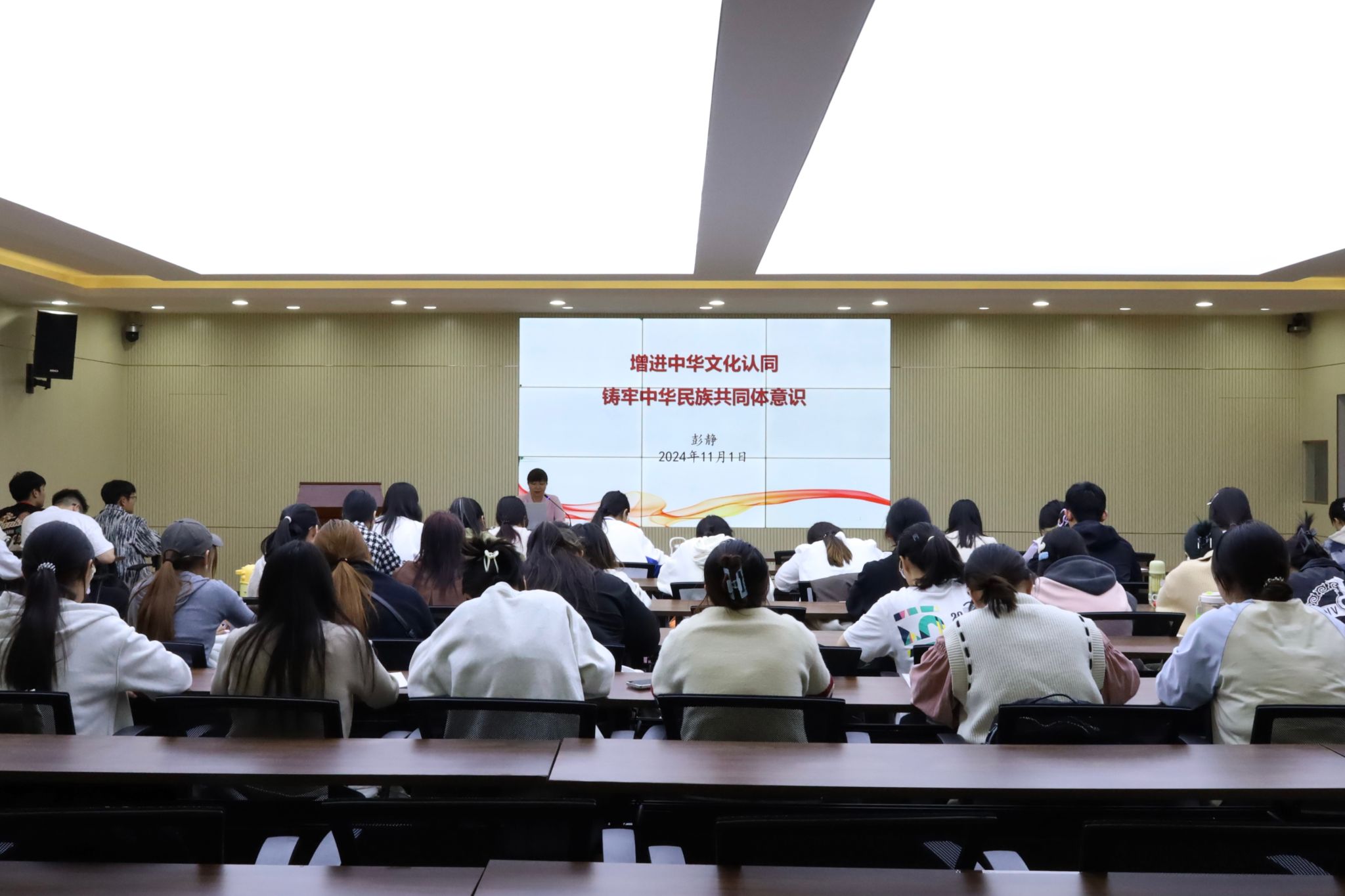 党课伊始,彭静老师就“增进中华文化认同,铸牢中华民族共同体意识”这一主题进行讲解。从“聚焦政治认同”“聚焦文化认同”“聚焦情感认同”三个方面,重点讲述了铸牢中华民族共同体意识的内涵、基石与途径,同时结合各民族之间文化的共同性和差异性,突出强调了增强“五个认同”、强化“三个意识”、学好国家通用语言文字的重要性。最后,彭静老师希望大家在日常生活中,能够规范使用普通话,注重语言表达,增强文化认同,厚植认同底色,争做德智体美劳全面发展的社会主义建设者。
