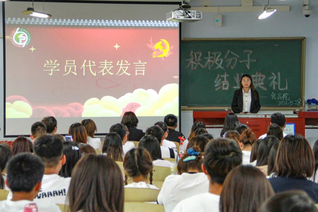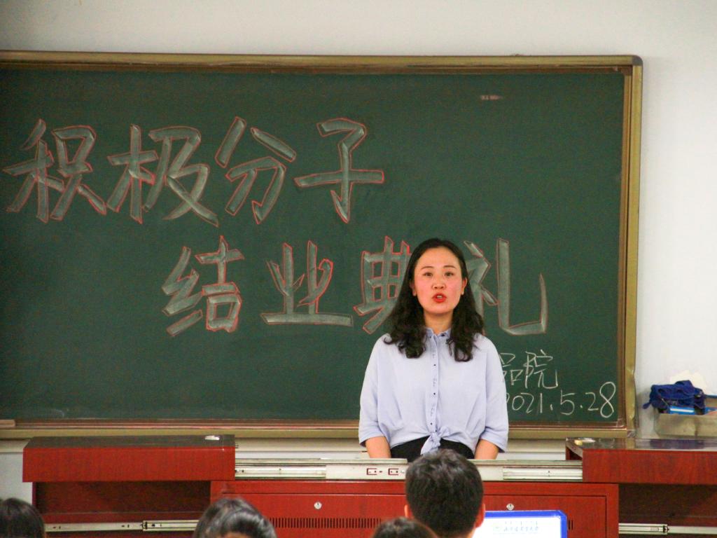 结业典礼在庄严肃穆的国歌中开幕,希吉日做本期积极分子培训工作总结。此次培训通过线上、线下的课程学习、综合测评、结业考试等环节,125名学员顺利结业。20级学硕胡海敏、19级食品安全二班邱景良作为学员代表发言。