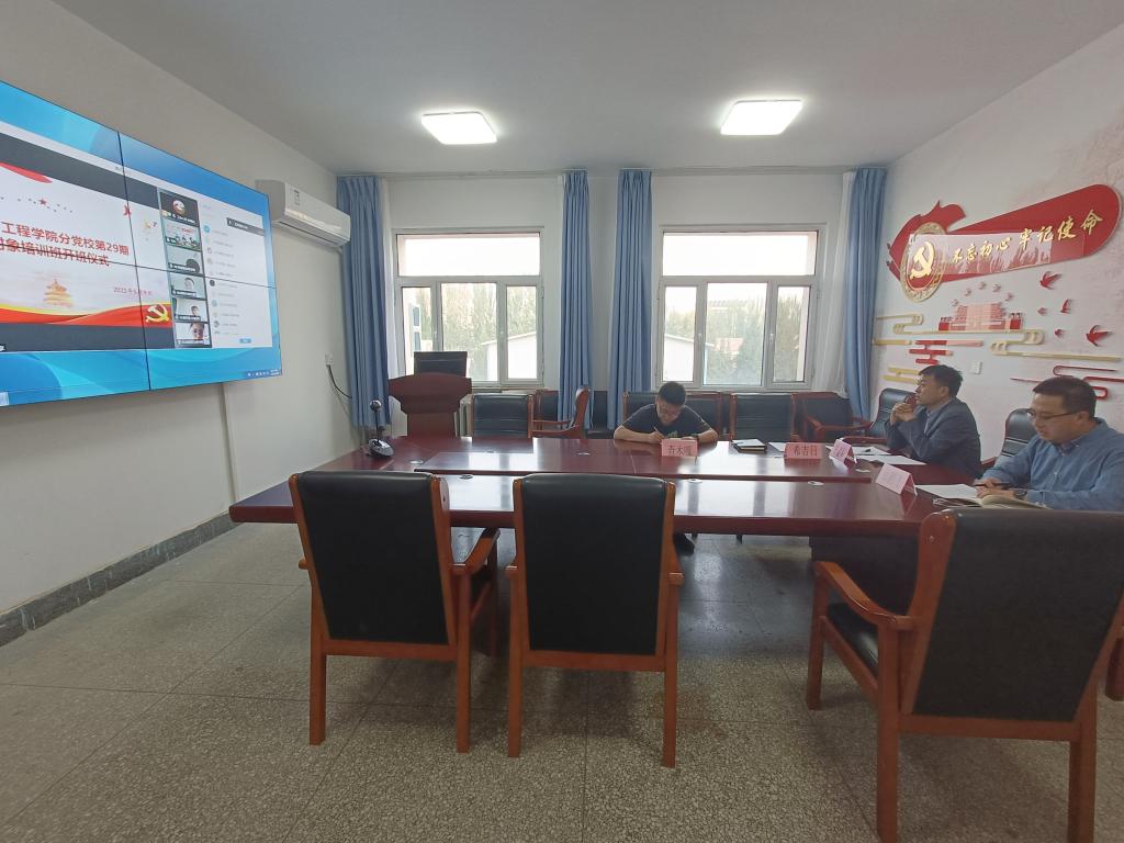 2022年5月9日晚七点,在我院二楼会议室以线上线下相结合的方式举行学院分党校第29期发展对象培训班开班仪式暨第一次党课。学院党委书记杨建军,党委副书记张鹏飞,全体学生党支部书记、委员以及本期发展对象参加,党委副书记张鹏飞主持会议。
