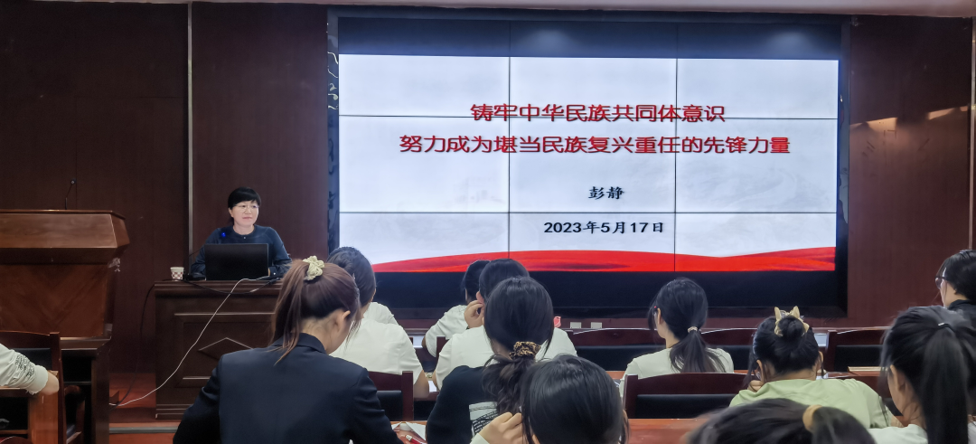 课上,彭静老师以“铸牢民族共同体意识,努力成为堪当民族复兴重任的先锋力量”为题,结合党的二十大报告,分别从“准确理解铸牢中华民族共同体意识”、“铸牢中华民族共同体意识的重要途径”、“铸牢中华民族共同体意识重在落实”这三个方面深刻阐述了铸牢中华民族共同体意识,并结合各民族交往交流交融的优秀事例,对其深刻内涵和现实意义进行了全面解读,教育引导大家牢牢把握“四个共同”和“五个认同”,切实铸牢中华民族共同体意识。