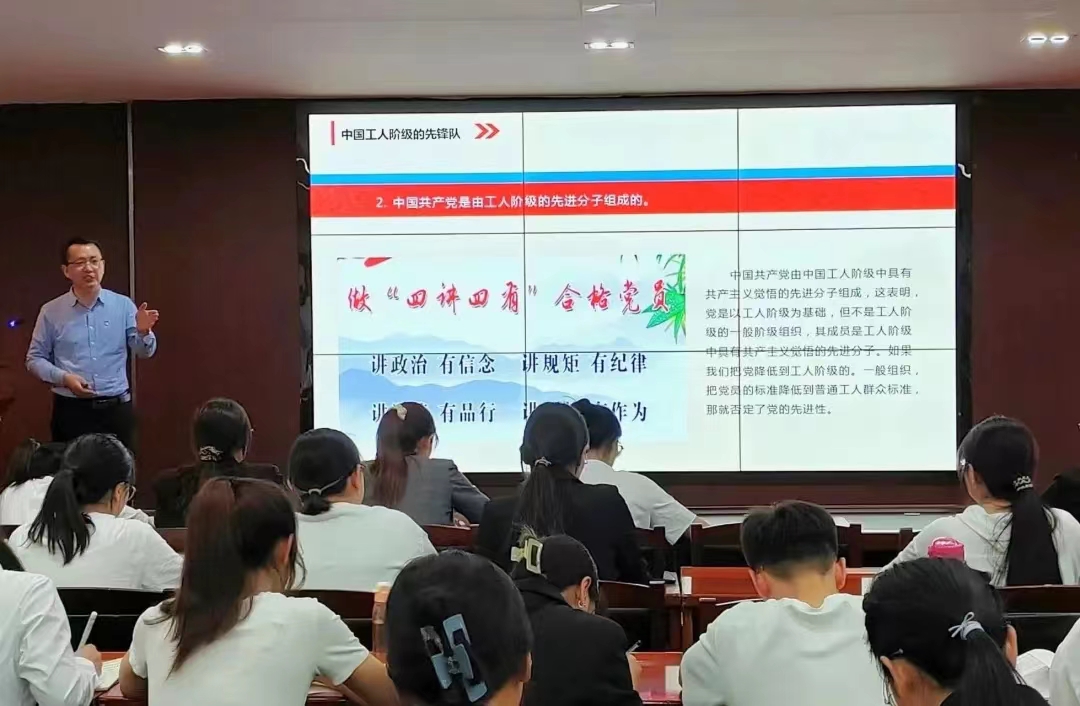 课上,孙玉伟老师以“中国共产党的性质、最高理想和根本宗旨”为题,结合二十大精神,就疫情期间党员坚守一线等事迹深入阐述了中国共产党的性质的丰富内涵、共产党人追求共产主义的实践历程以及党全心全意为人民服务的根本宗旨。孙老师希望,大家要以党章老要求自己,端正入党动机,丰富理论知识,坚定理想信念,力争早日加入党组织。