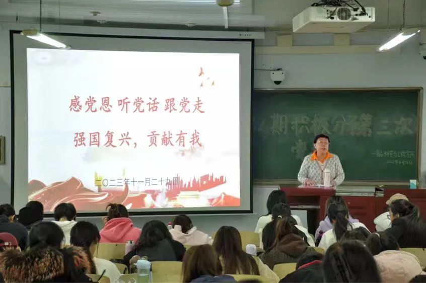 2023年11月29日19:00,我院分党校第三十二期入党积极分子第三次党课在博学楼307顺利开展。本次党课由现任内蒙古老教授报告团副团长、农大关工委报告团成员、我院关工委常务副主任乌兰老师主讲,第三十二期积极分子及学生党员服务站成员参加。