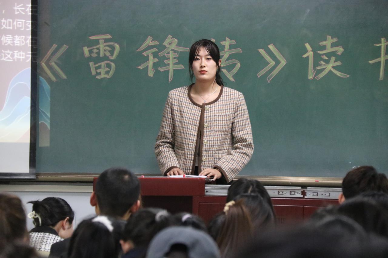 《雷锋传》以人物传记的形式叙述了雷锋的故事,展现了雷锋作为一个普通人对旧社会的恨、对新社会的爱和忠诚,他的追求、他的爱情、他的生活、他所表现的真善美的品质以及他由一个普通人成长为一名伟大的共产主义战士的历程。每位分享人在会前认真阅读,反复琢磨,在台上绘声绘色地将雷锋的故事娓娓道来,让在场的所有人了解到雷锋同志短暂、平凡而光辉的一生。