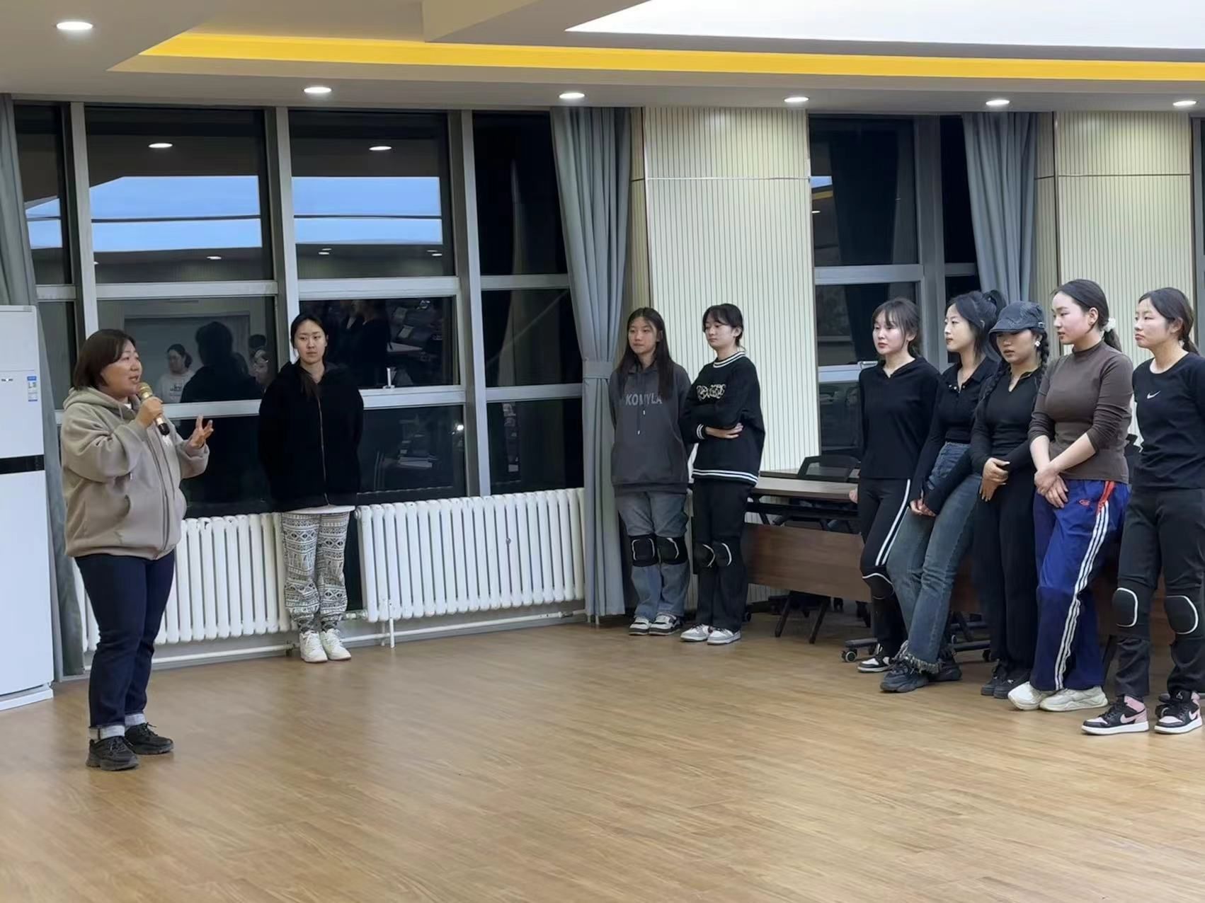 王彩霞向现场所有的演职人员表示感谢,对他们牺牲课余时间备战舞蹈,积极为学院争得荣誉的精神表示肯定和赞赏。她仔细询问了排练进展并就排练中遇到的问题给予耐心解答。面对课程较多,学业压力大的问题,王彩霞鼓励大家咬住牙,顶住压力,积极调整状态,争取做到学习排练两不误,并表示从学院整体层面编排设计好训练方案,保证高效训练有成效。她强调在排练过程中同学们要注意保护自己,避免受伤。