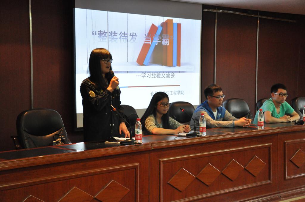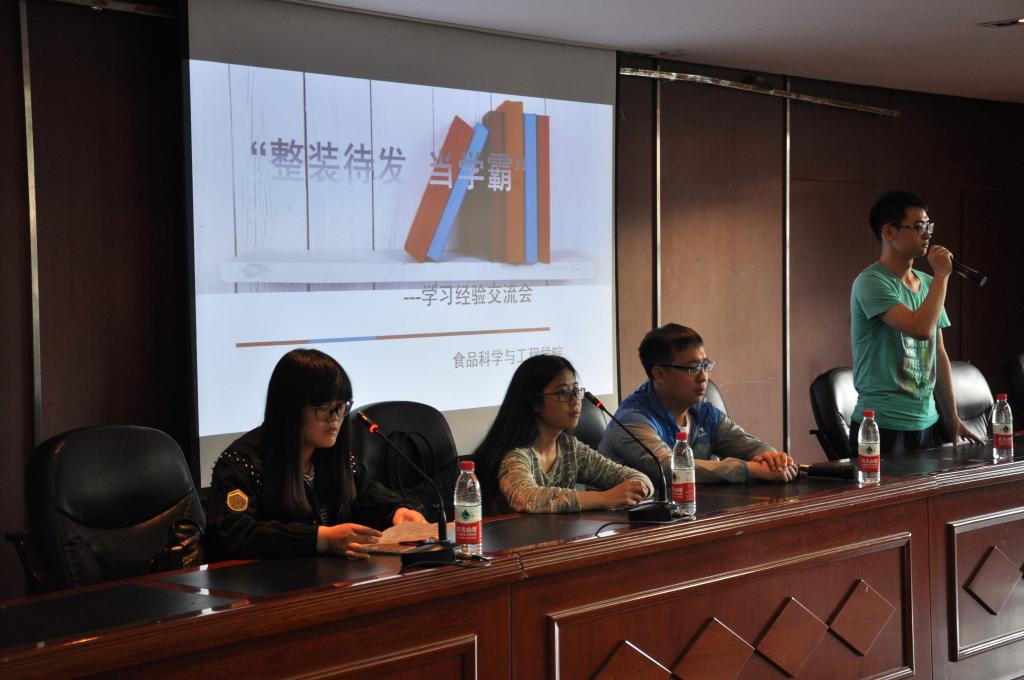 为了提高考研率,提高就业能力,降低补考率,我院于5月15晚19:00于乳品楼二楼会议室举办了“两提高,一降低”系列活动之——整装待发当学霸 保研考研学习经验交流会。出席活动的嘉宾有我院优秀学生王曙光、靳昊、莫蓝馨、孟掉琴,学办老师王彩霞及13级有考研意向的同学到场聆听。