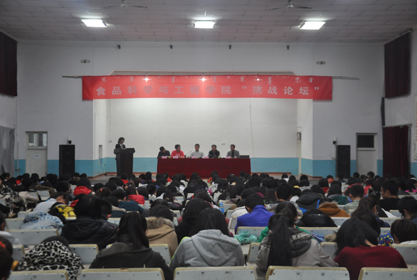 活动开始,曾获第七届内蒙古自治区“十佳毕业生”称号、第九届内蒙古自治区“青年科技创新奖”的科创中心创始人刘雪峰向大家详细介绍了“挑战论坛”的由来,并根据自己的大学学习经验教导同学们要有科技创新的意识。他通过讲述自己与“挑战杯”的渊源,为大一新生传授了经验。他还与同学们探讨了科技创新和创业就业的问题。随后,“不倒翁”食品有限责任公司总经理杜如意向同学们传授了创业的经验,并教导同学们要多与老师交流。他希望同学们能够踏实肯干,珍惜在校时光,不要虚度光阴。接下来,团委老师徐付赞许了我院的科研气氛,并鼓励同学们多思考,多学习,培养创新精神。最后,党委副书记屈丰富对本次“挑战论坛”做出总结,告诫同学们要想有所成就,就要把握自己,珍惜时间。