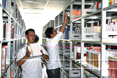 我院青年志愿者长期帮助校图书馆整理摆放图书
