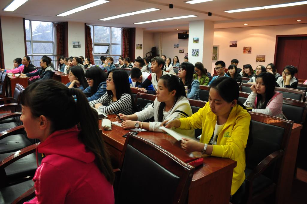 为提高我院学生对英语的学习兴趣,提高同学们对四六级应考的能力。4月25日晚上7:00,我院于乳品楼二楼会议室举办了我院“两提高 一降低”主题系列活动之四六级经验分享交流会。此次活动特邀请到我院高分通过六级考试的英语学霸13级食品1班的杨青、13级双语二班的白雪、13级食安一班的何峰为大二、大三的同学分享四六级考试的经验。我院学办老师王彩霞老师、分团委副书记陈璐、分团委学生会主席董安利出席了此次交流会。
