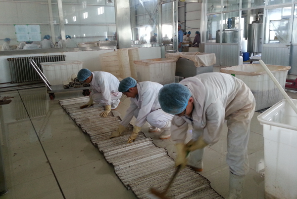 李部长在生产前会议上强调:“食品企业的卫生情况决定着企业的胜负,拥有好的卫生条件是企业做大做强的大前提,而且在清洗生产设备的时候有很多需要注意的细节和技巧,希望同学们认真学习,深入摸索。”而后同学们开始分工进行清洗工作,洗菜机、打丝机、脱盐机、包装机、灭菌机、烘干机,同学们认真有序的进行清洗工作。最后,经过李部长的检查后,同学们所清洗的生产设备全部合格,今天的实践工作圆满完成。