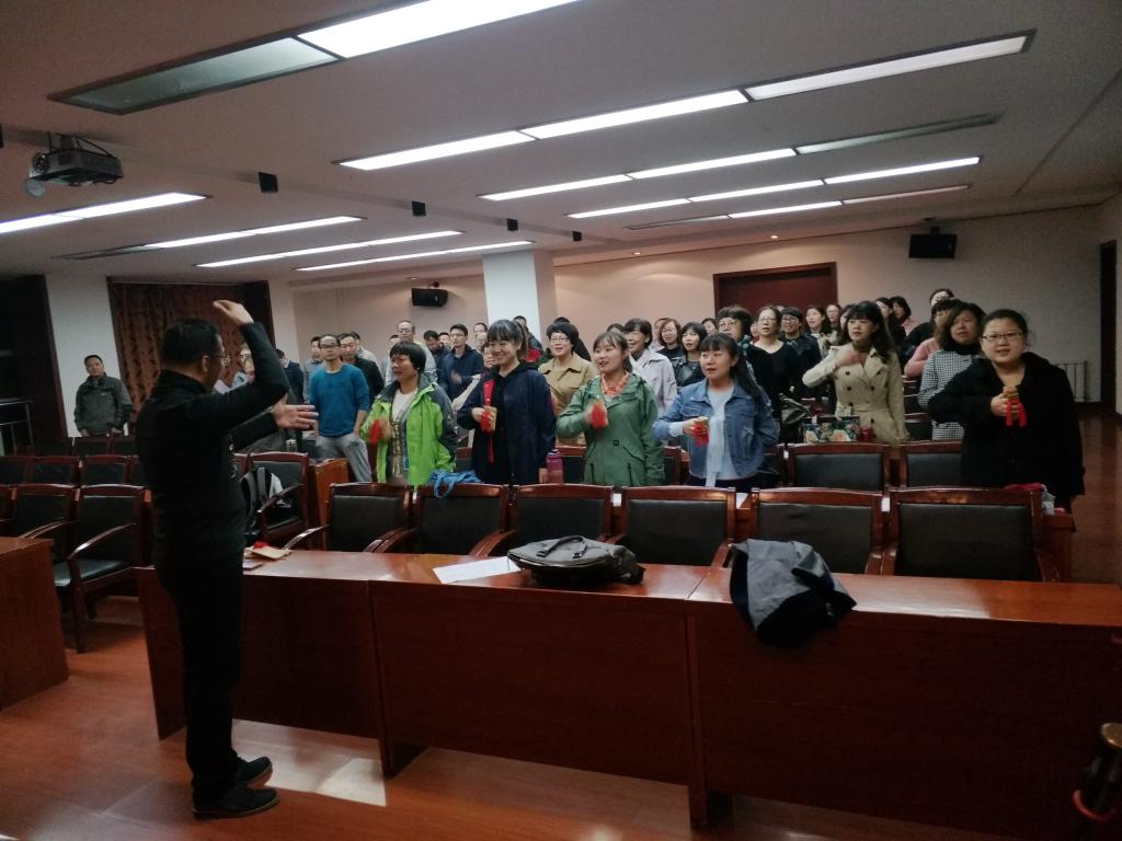 一个多月的时间,我院认真编排与整合,由于平时教学任务重,很难统一练习时间,老师们牺牲了自己的休息时间。为了及时赶到会议室进行排练,很多老师刚下课、没顾上休息或是吃饭就急忙赶到排练场。每位老师都认真练习,按照教练的指导意见,力争将最好的表演效果展示出来。