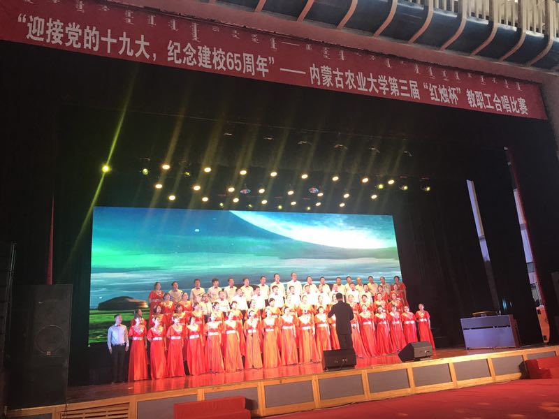 为迎接党的十九大胜利召开,纪念建校65周年,10月15日下午和晚上,学校在西区体育馆分两场举行了“光辉的旗帜”教职工大合唱比赛暨第三届“红烛杯”文艺汇演。