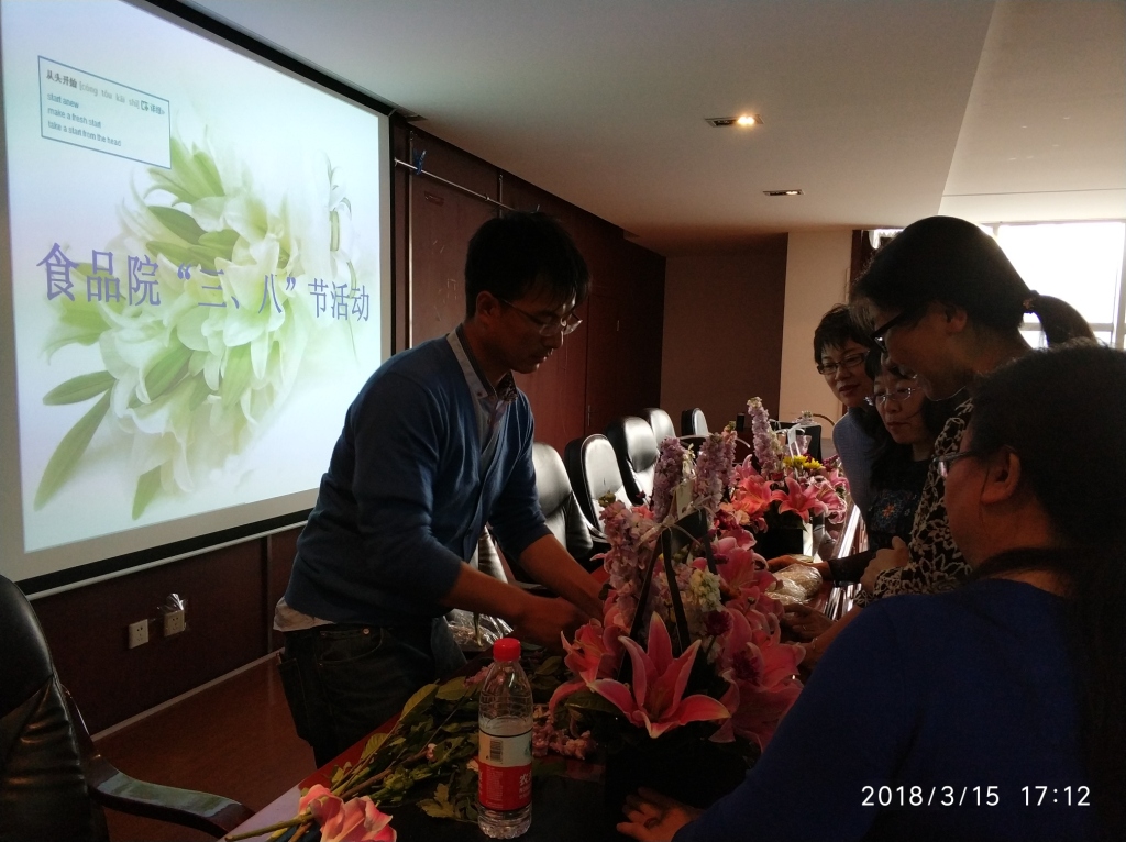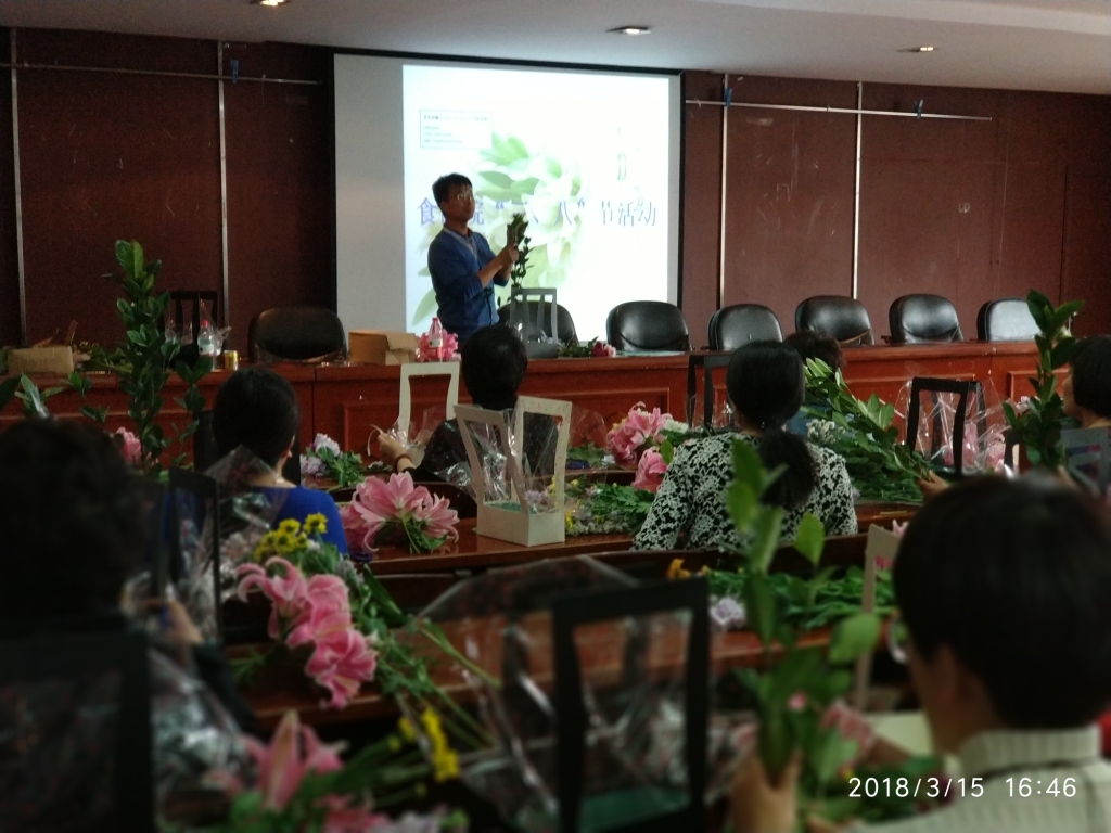 为庆祝“三·八”国际劳动妇女节,提高女教工的生活质量,不断满足女教工对美好生活的需要,3月15日下午4:00,食品学院在乳品楼二楼会议室举行艺术插花花艺培训讲座,我院广大女教工参加了活动。
