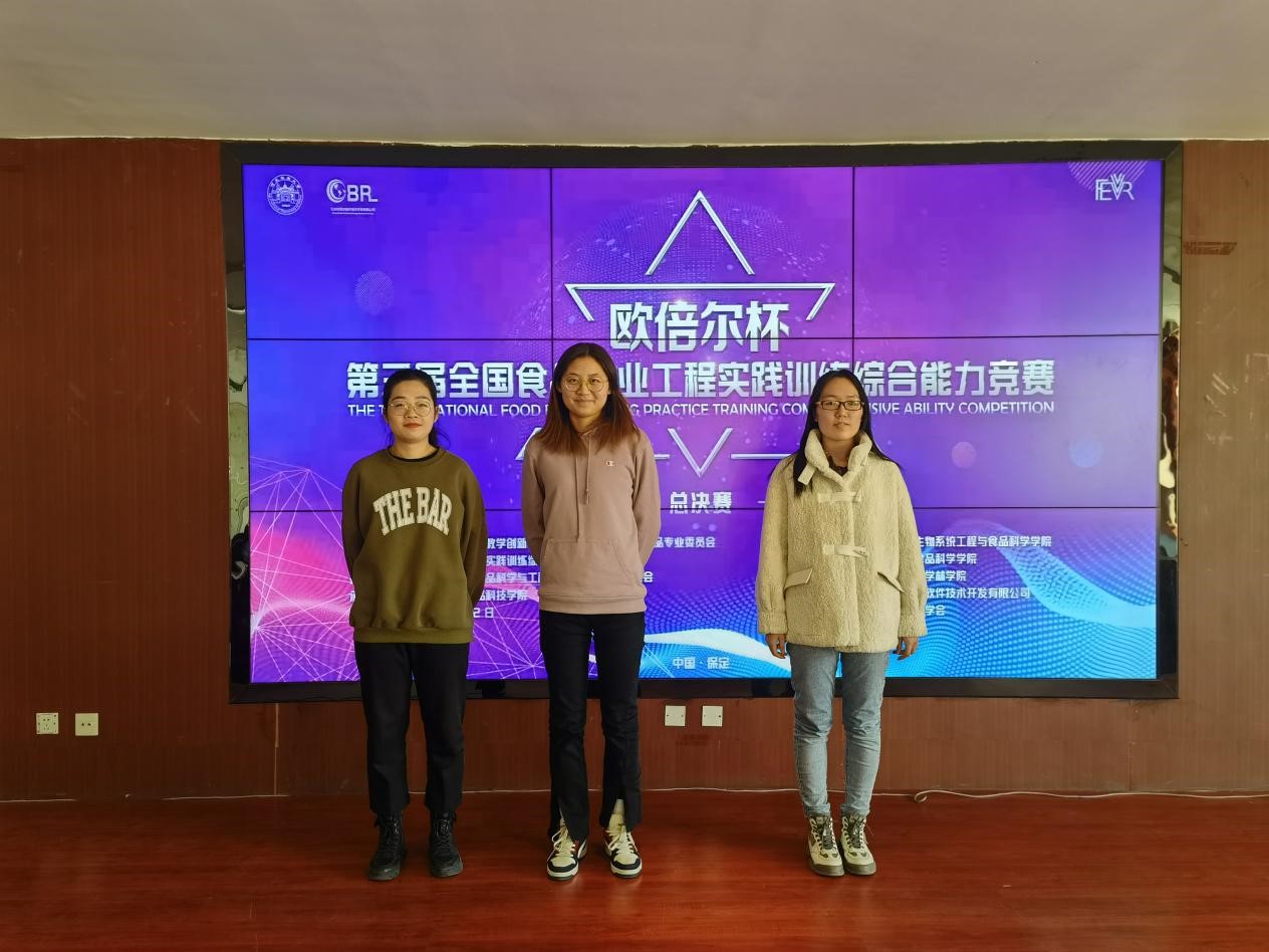 12月12日,“欧倍尔杯”第三届全国食品专业工程实践训练综合能力竞赛总决赛落下帷幕,我院孙文秀教授作为指导教师,率领刘瑞瑞、翟晓梅和刘嘉媛三位同学代表我校取得了全国二等奖的优异成绩,此前他们以北部赛区一等奖的成绩进入决赛。