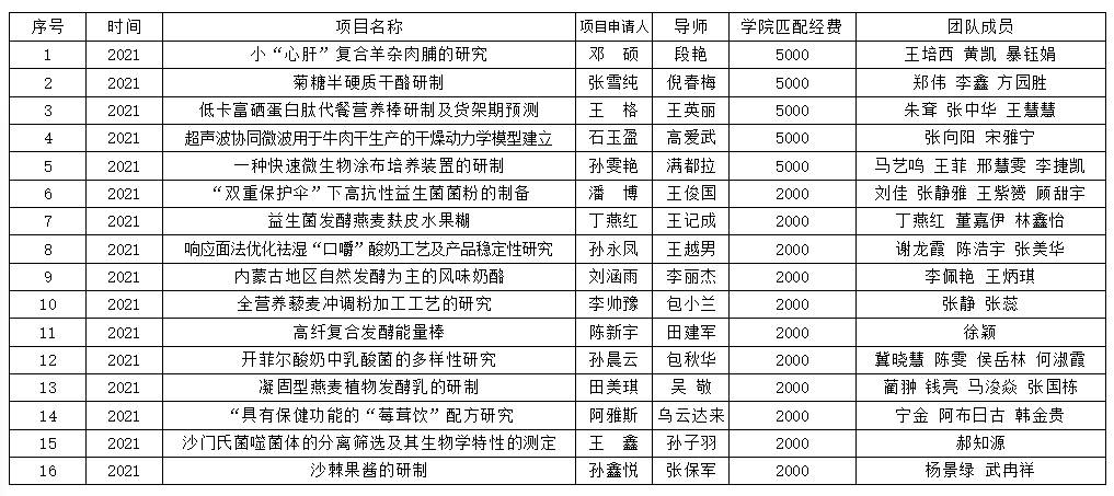 伟德体育官网2021年大学生科技创新基金项目立项名单(院级)
