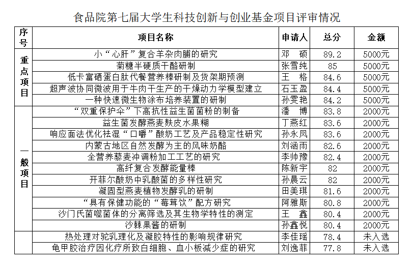 我院第七届大学生科技创新与创业基金立项评审公示