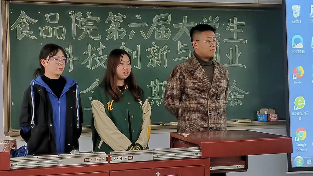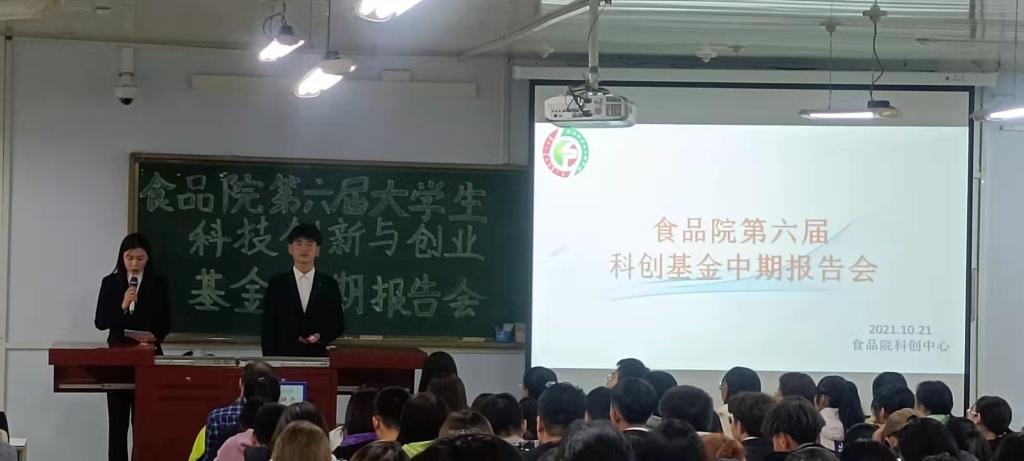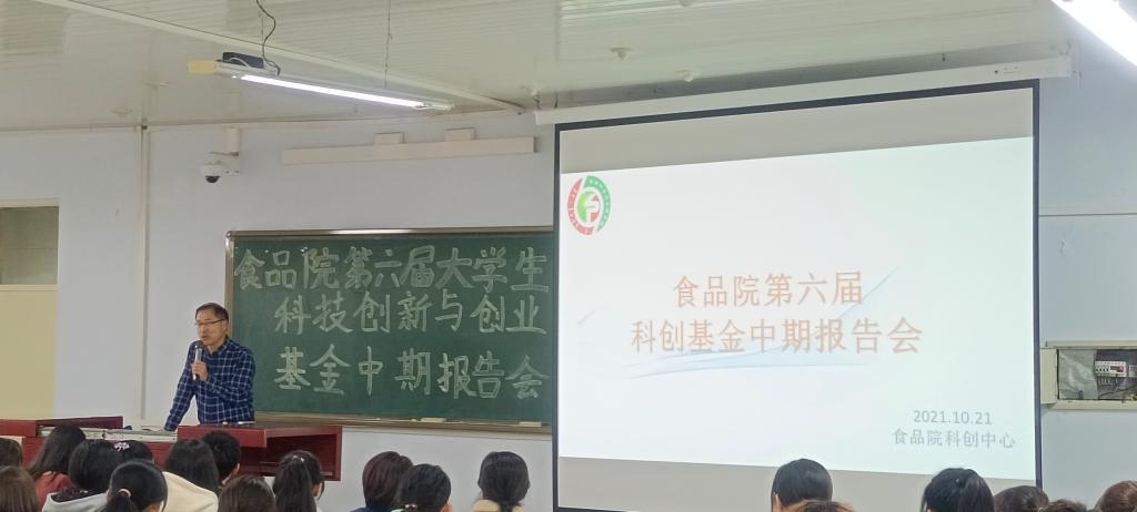 我院于10月21日19:00在博学楼309室召开我院第六届大学生科技创新与创业基金项目中期报告会。学院分管教学副院长王俊国教授、食品科学与工程教研室主任杨杨老师、乳品工程教研室主任陈霞老师、食品质量与安全教研室主任杨飞芸老师、包装工程教研室副主任张鹏老师、学办王微老师担任本次会议评委。参加本次会议的还有各项目小组成员、科创中心成员及对科技创新项目感兴趣的同学。