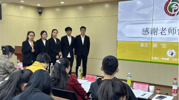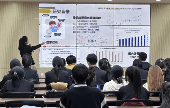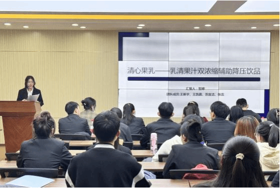 乳品工程教研室主任陈霞教授、食品科学与工程教研室主任杨杨副教授、包装工程教研室主任张鹏、学生工作办公室副主任王微担任评委。各项目组成员、科创中心全体成员以及对科技创新感兴趣的同学们参会 。