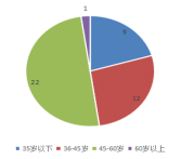 食品科学与工程专业目前有专职教师50人,其中专业基础课和专业课教师44人,实验技术人员6人。专任教师中“长江学者奖励计划”特聘教授和国家杰出青年科学基金1人、享受政府特殊津贴专家2人、全国先进工作者1人、国家“百千万人才工程”1人、全国农业科研杰出人才1人、国家“万人计划”科技领军人才1人、教育部新世纪人才1名、自治区“新世纪321人才工程”一、二层人选5人、入选自治区“333人才引进工程”首席专家2人、自治区“草原英才”5人,校级教坛新秀 2 人。专职教师中有博士学位的教师41人,占专职教师总数的82%;博士生导师11人,硕士生导师17人;教授17人,副教授11人,占专职教师总数的56%。满足补充标准从事本专业基础课和专业课教学工作的教师中,具有高级职称或具有博士学位的教师比例应达到50%的要求,师资队伍的实力强,职称和学历结构合理。学院结构上,专任教师中具有一段及以上外校学历的教师27人,占专任教师总数的54%;最后学历或学位是外校的教师19人,占专职教师总数的38%,具有合理的学缘结构。从专业结构来看,从事本专业必修专业课教学工作的所有教师,其本科、硕士和博士学历中至少有一个学历属于食品类相关专业,符合补充标准的要求。基础课教师有农学类、畜牧类、微生物类等专业,结构合理,满足本专业的教学需求。从年龄结构看出,专任教师中45岁以下青年教师占总教师人数的42%以上。专职师资队伍的年龄、学位、职称结构的具体情况见表1及图1。