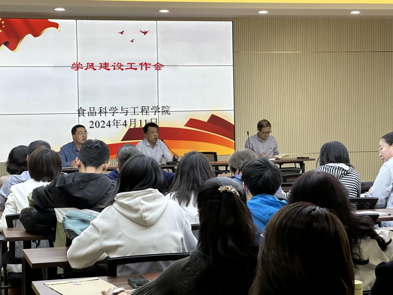 为落实学校关于学风建设的要求,持续推进学院学风建设,建立健全弘扬优良学风的长效机制,4月11日下午,我院在乳品楼二楼会议室召开学风建设大会,学院党委书记杨建军主持会议,学院党委副书记张鹏飞、副院长王俊国和全体教职工参加会议。