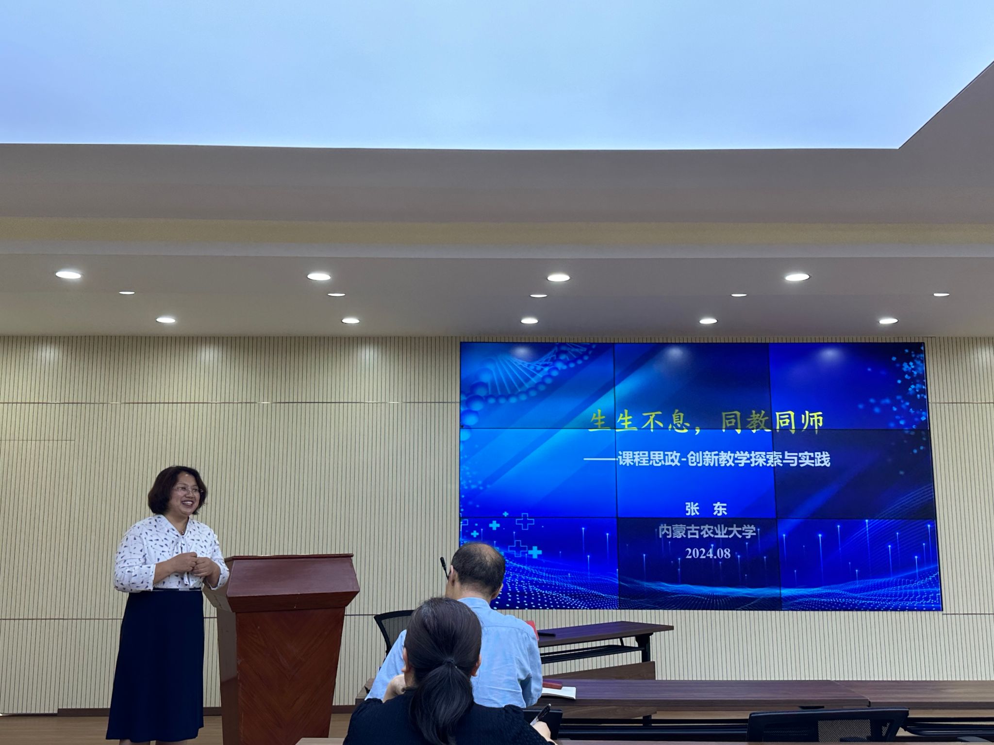 为深入贯彻本科教育教学审核评估工作要求,进一步提升教师的课堂教学能力,8月28日,我院邀请曾获得第三届全国高校教师教学创新大赛新工科正高组二等奖、首届内蒙古自治区普通高校课程思政教学技能大赛一等奖的草业学院教师张东来我院进行课程思政和创新教学的培训活动。